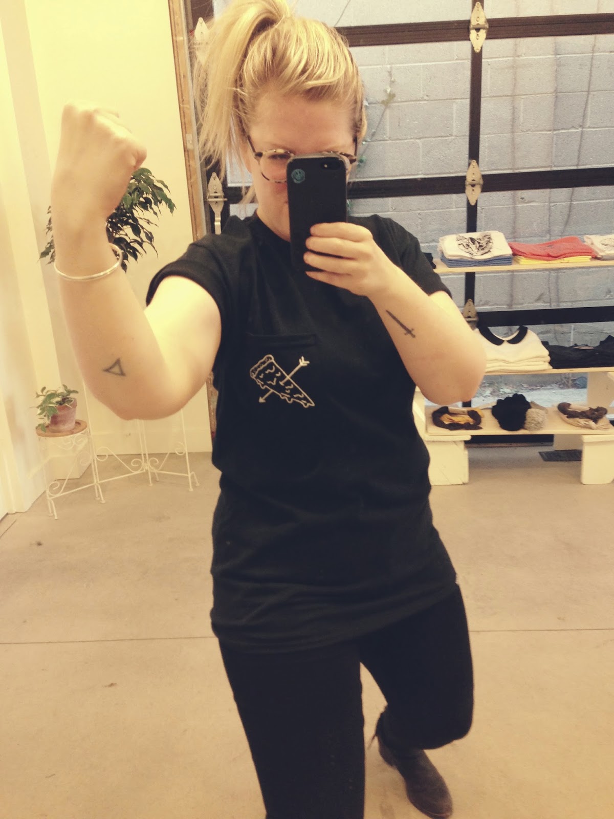 We also scooped up these "Pizza Pocket" tees. That's right -- there is a pocket, with a pizza on it, to go over your heart (the only other place that pizza belongs other than in your stomach).