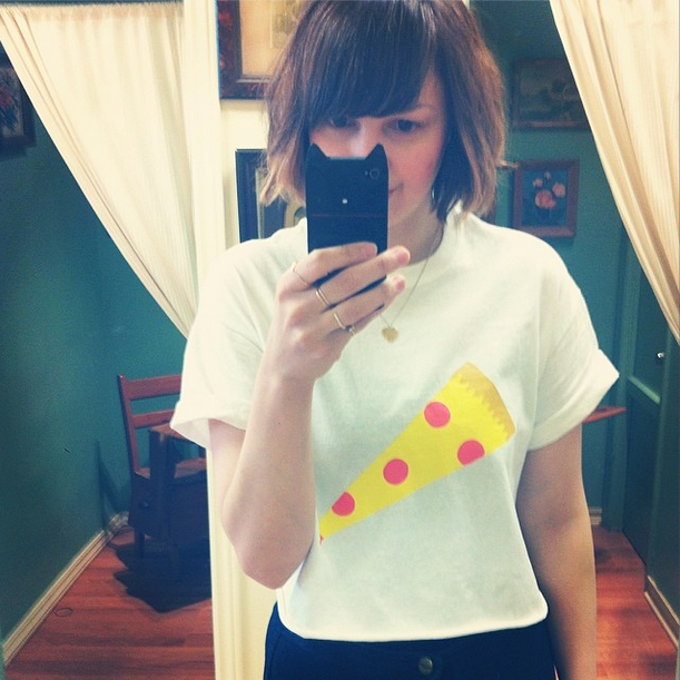 Not only does Char make all those awesome hand-painted hot dog, donut, and pizza slice tees that have been blowing up on your Instagram feed, she's also a co-owner of Milk Glass, a gallery on Dundas just around the corner from us at 129 Ossington. In addition to exciting art shows, Milk Glass also has lots of really fun dance party nights so you should definitely check it out if you're looking for something to do on a Friday night.