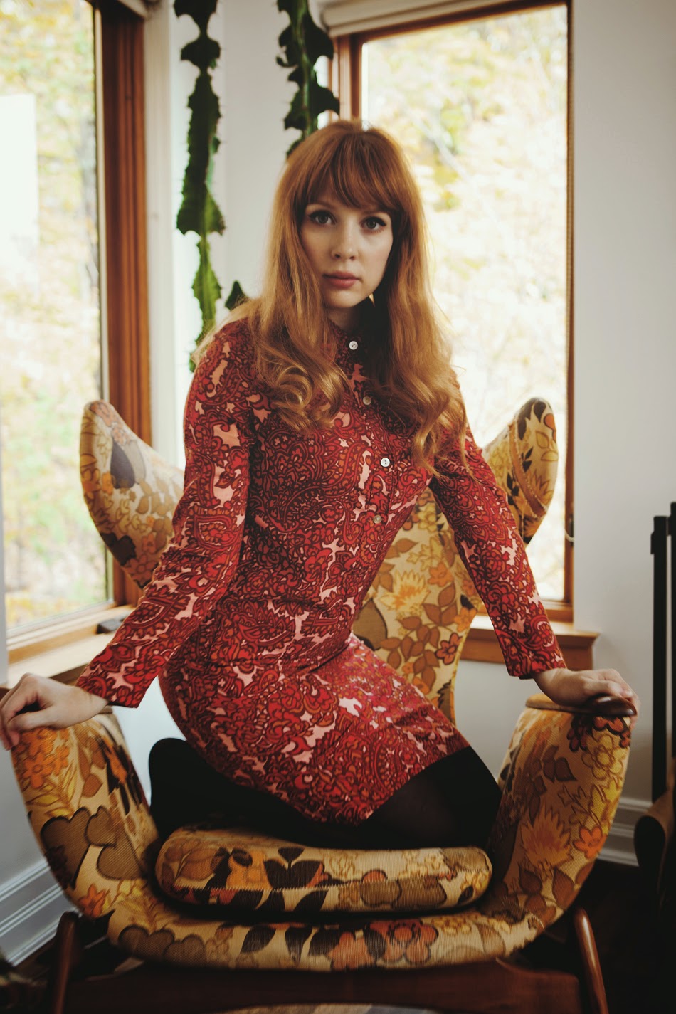 One of our favourite muses, Hannah Kristina, was kind enough to model one of our grooviest dresses of the sale (and now I am even more inspired to get bangs) and one of our favourite photographers, Arden Wray shot this and some new clothing for our webstore.