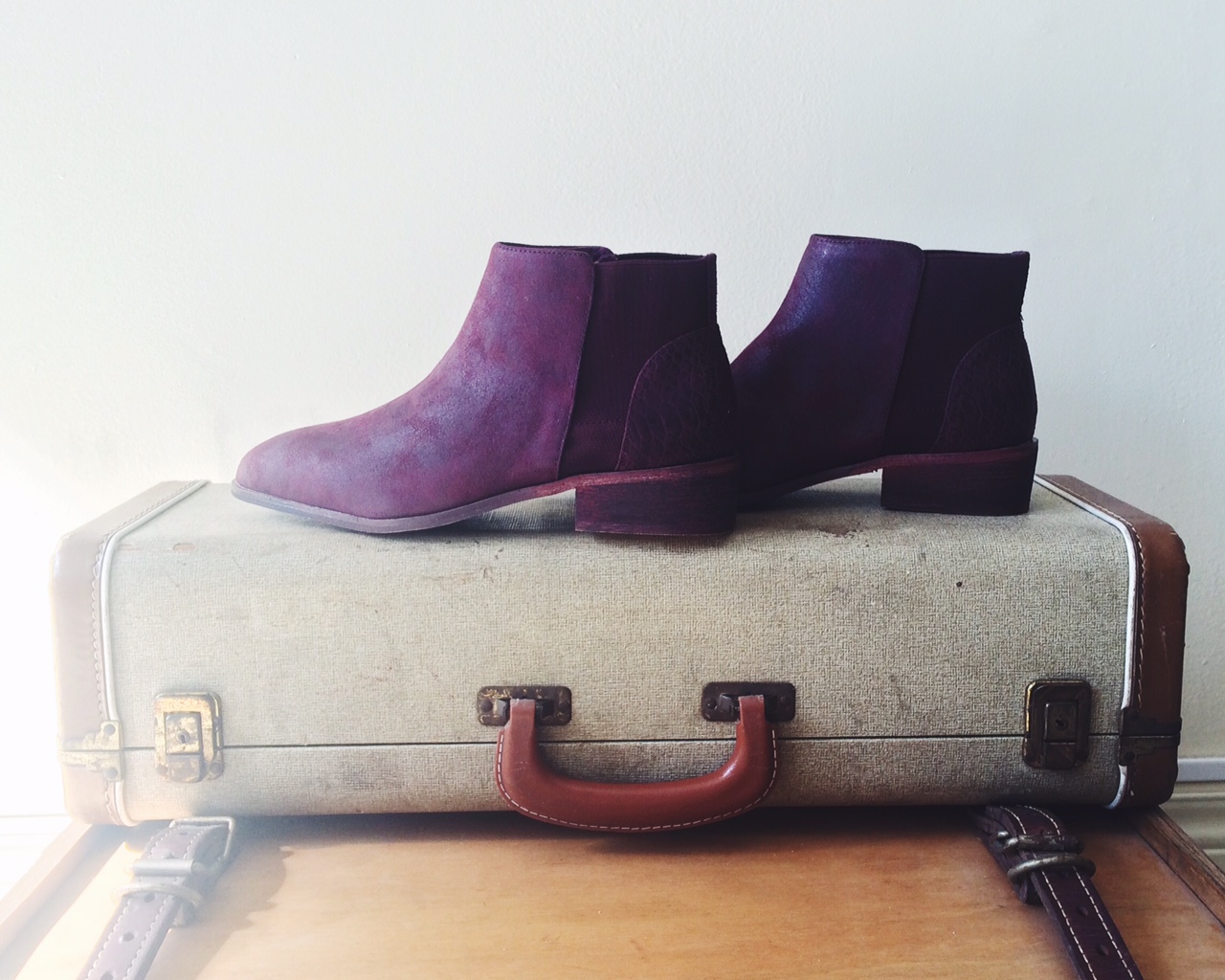 These burgundy booties are the perfect match for this dress. Montreal line Matisse Footwear is the newest addition to the Victoire family. They are designed in Montreal, and are Vegan - no leather is involved but they do have a suede look. These ankle boots have a real sixties vibe - the pointed toe and block heel is *just* right. The two tone deep wine colour has a textured pattern on the ankle panel for contrast. We are smitten!