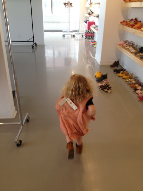 We were just in Montreal earlier this week buying for Spring/Summer 2014, and we brought along a very special fashion consultant on all our buying appointments - Eloise! Eloise knows that momma & Reggie work together at the store (and work ALOT!), so it was kindof a special treat for her to come along to Montreal with us, just her, mamma and Reggie on our "work trip".