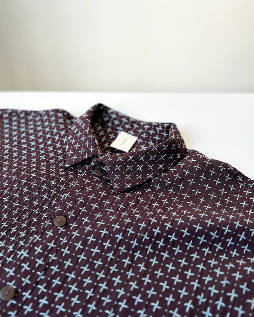 The Loose Fitting Shirt by Atelier B is a designer staple that they revisit season after season in new fabrics and patterns! It's a versatile piece that can be worn year-round; wear it with a turtleneck underneath or an open jacket or sweater on top. This season's version is made with beautiful Indian textured cotton voile and enhanced with a light blue mini cross-stitched embroidered details!