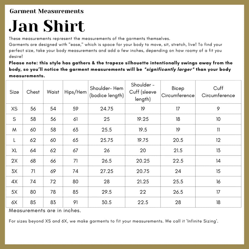 Meet the Jan Shirt by Connally Goods! Done in a lightweight organic cotton voile, the Jan is a spectacular demi-couture inspired style designed for every season. Thoughtfully crafted, it brings an unmistakable sense of quiet luxury to everyday dressing. The silhouette starts with gentle tailoring at the shoulders before opening softly into a trapeze shape, providing comfort, elegance and whimsy. Delicate gathers at the yoke allow for easy, graceful movement, giving you an airy and comfortable fit yet, still refined.