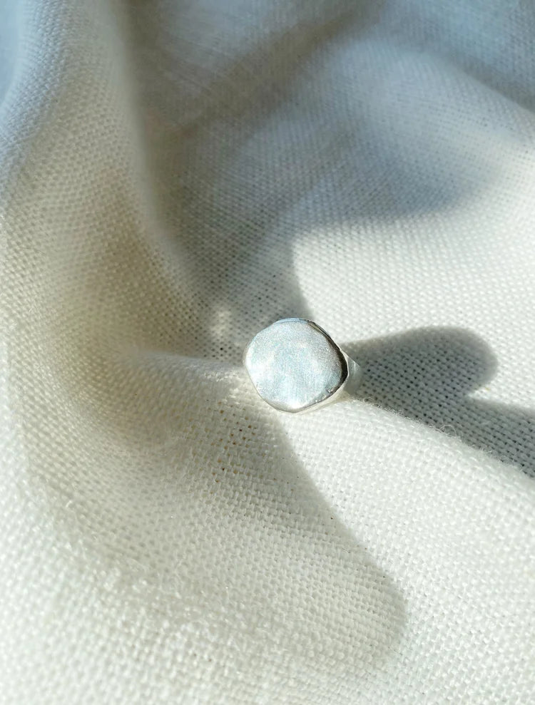 The Circe signet ring handmade by Hawkly in solid sterling silver.