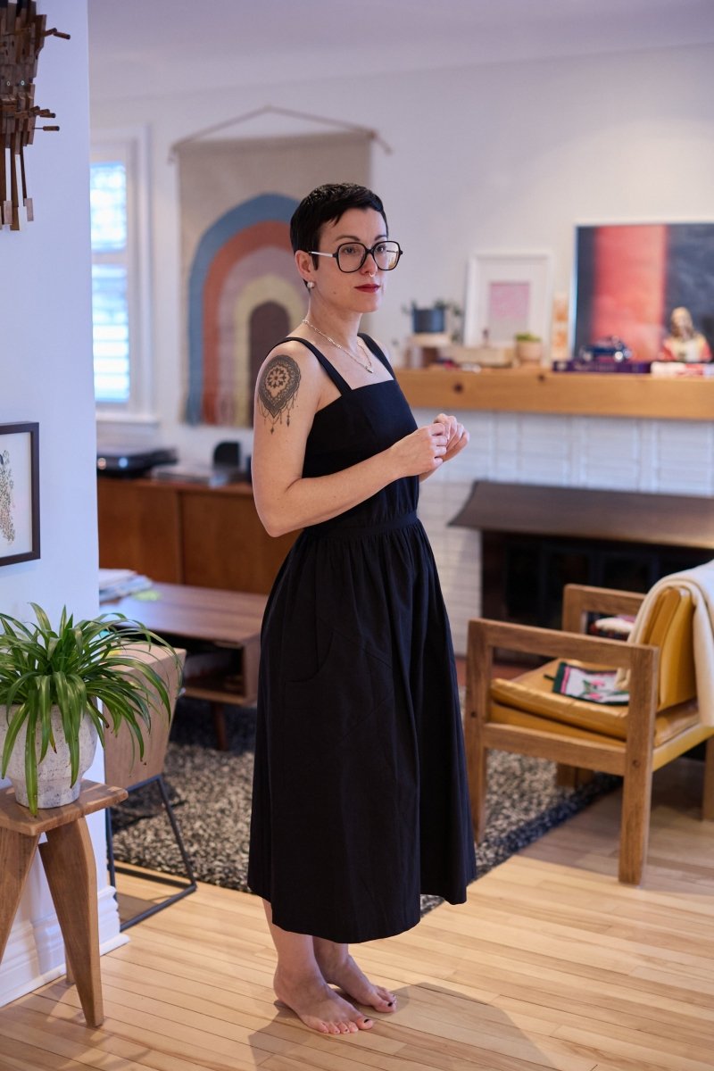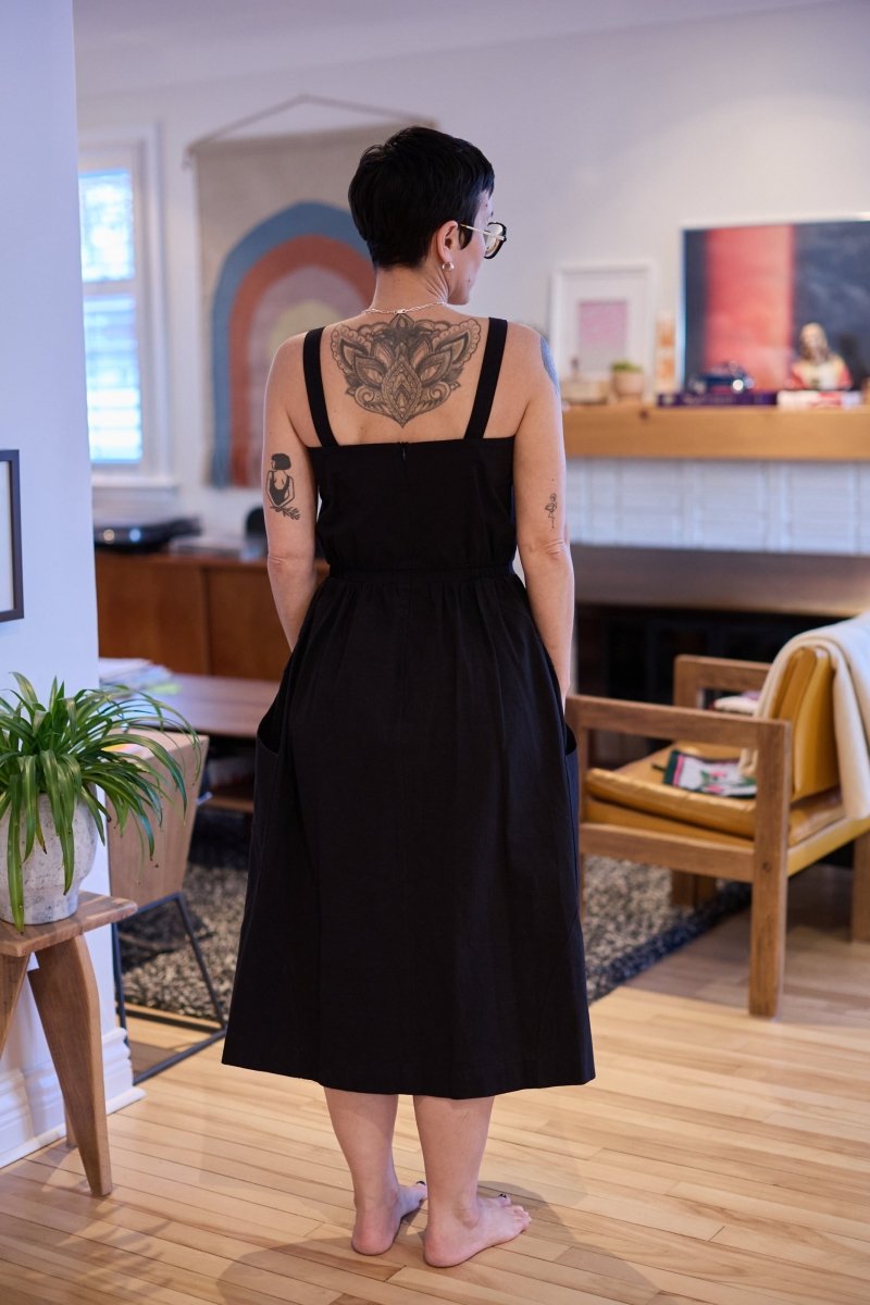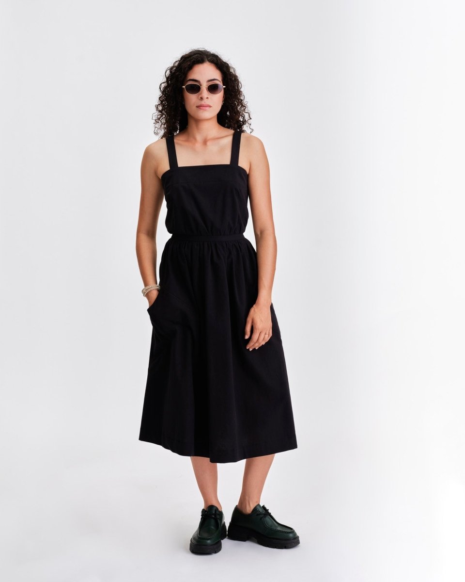 Designed for sun-soaked days, the Calypso Dress by Jennifer Glasgow combines effortless style with thoughtful details. The voluminous skirt gently gathers at the waist, with pockets inserted into an original style line. The fitted bodice features wide straps for comfortable coverage, while an invisible back zipper ensures a seamless finish. Made from soft crinkle cotton, this dress is your go-to for breezy, warm-weather elegance!