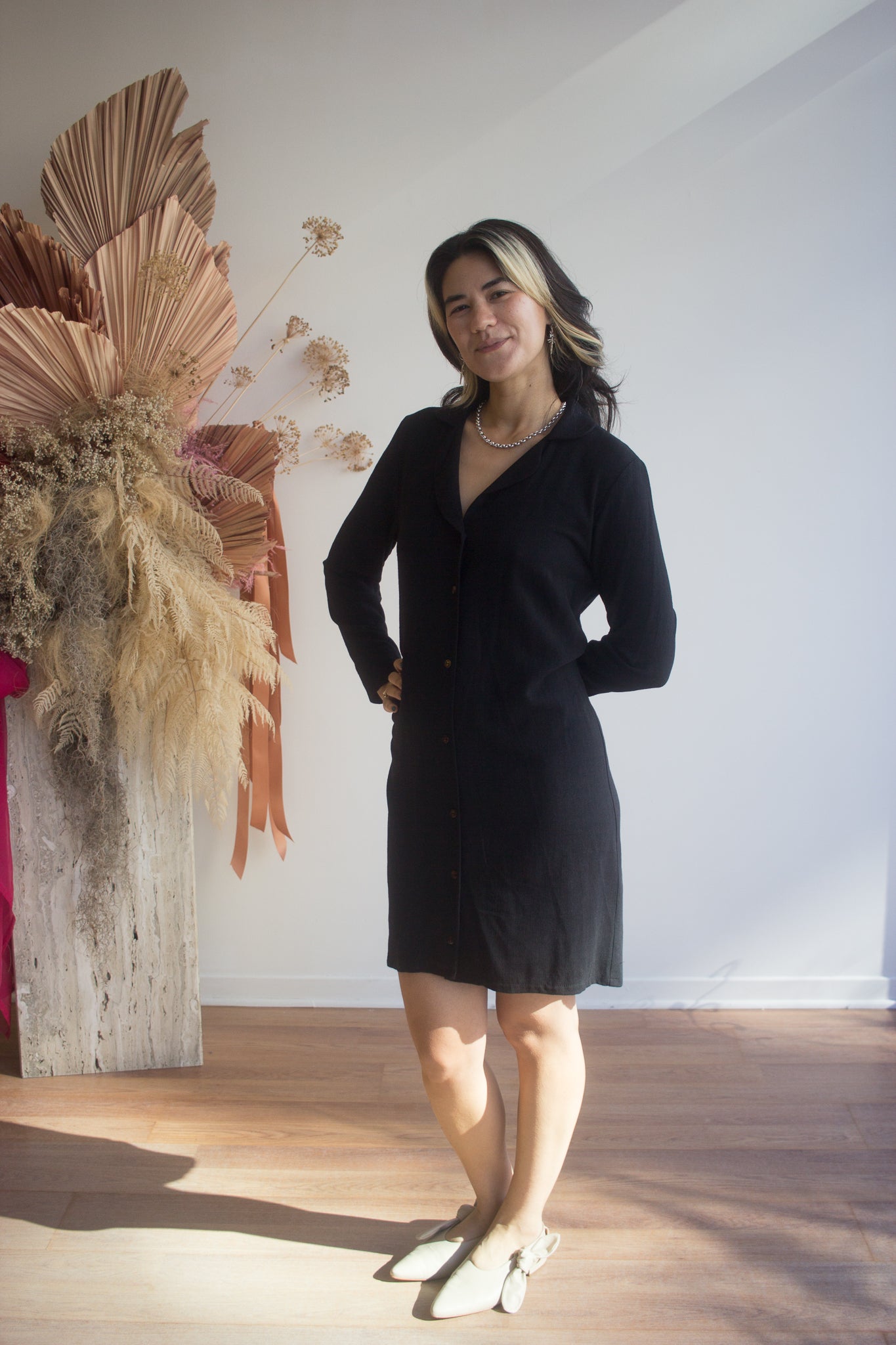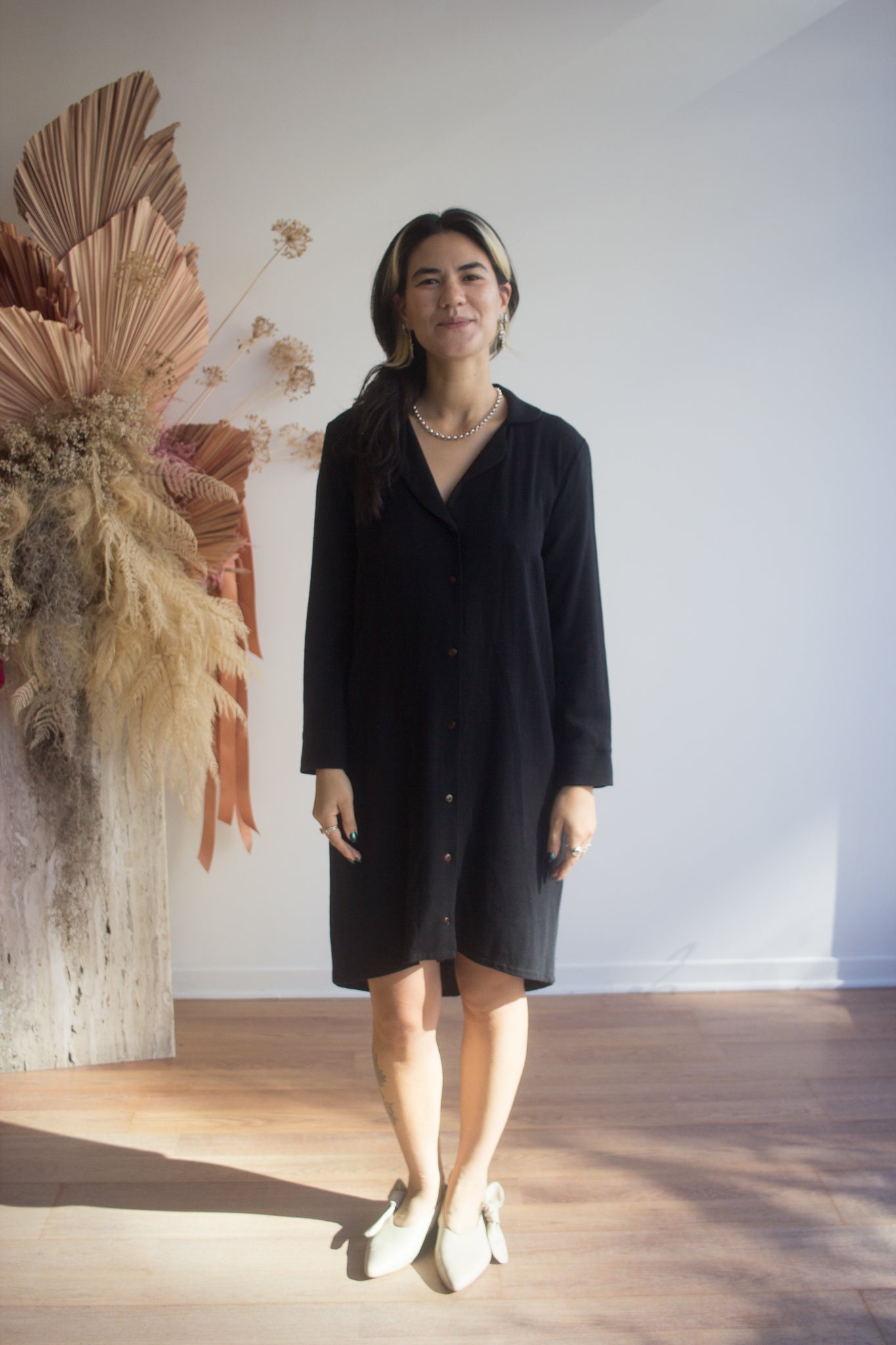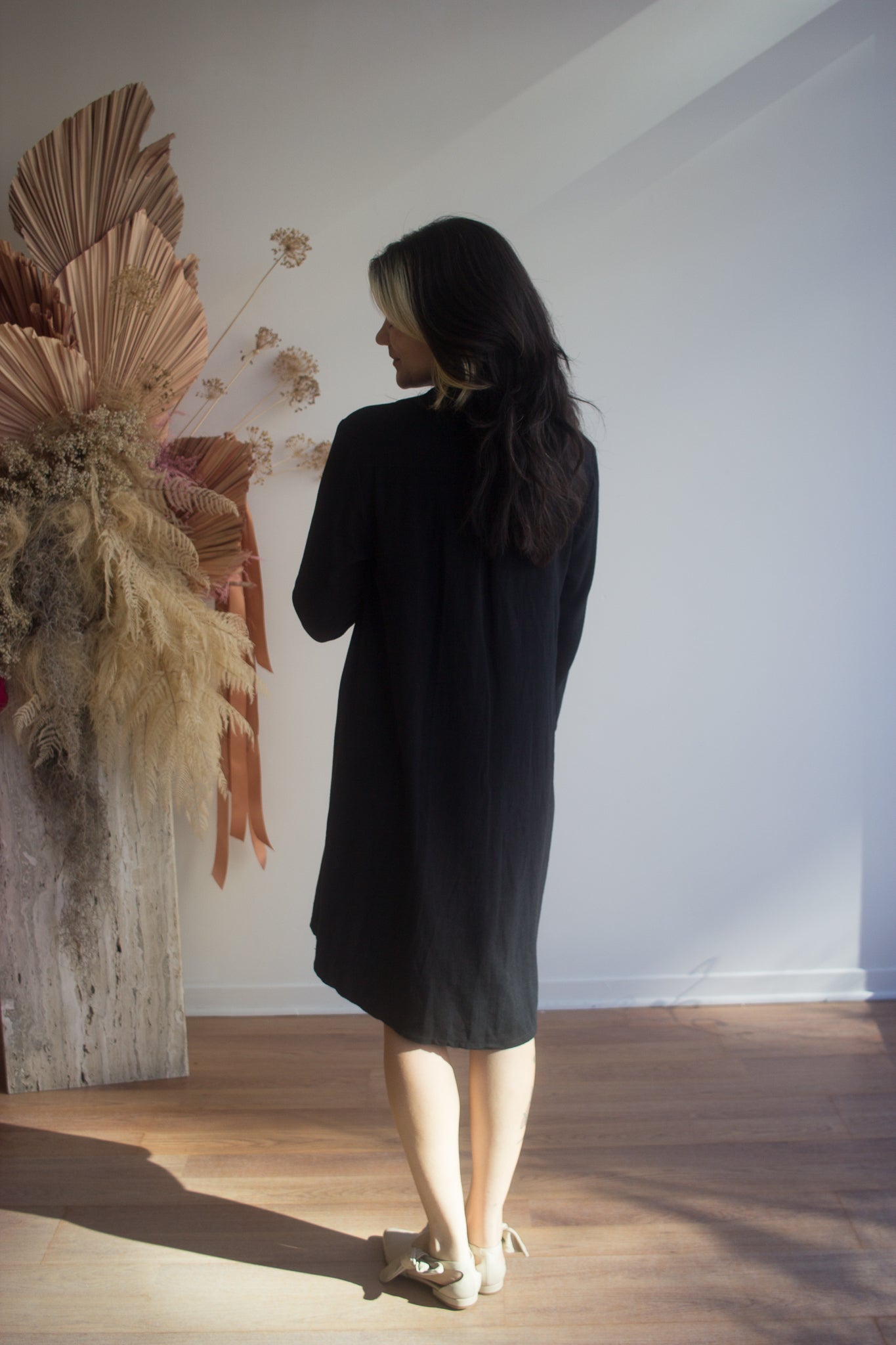 A classic and elegant dress, with a casual and relaxed cut, making it the perfect feel-good piece. It was designed while keeping in mind the freedom of movement and refinement of the perfect relaxed shirt dress.