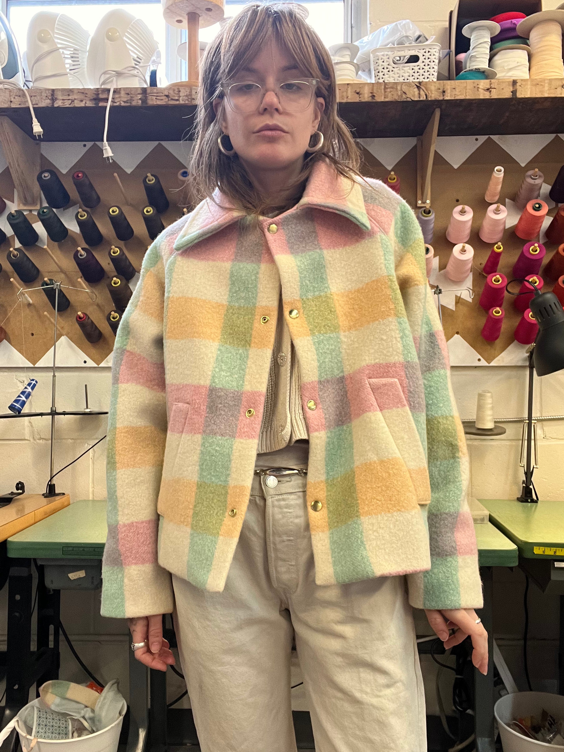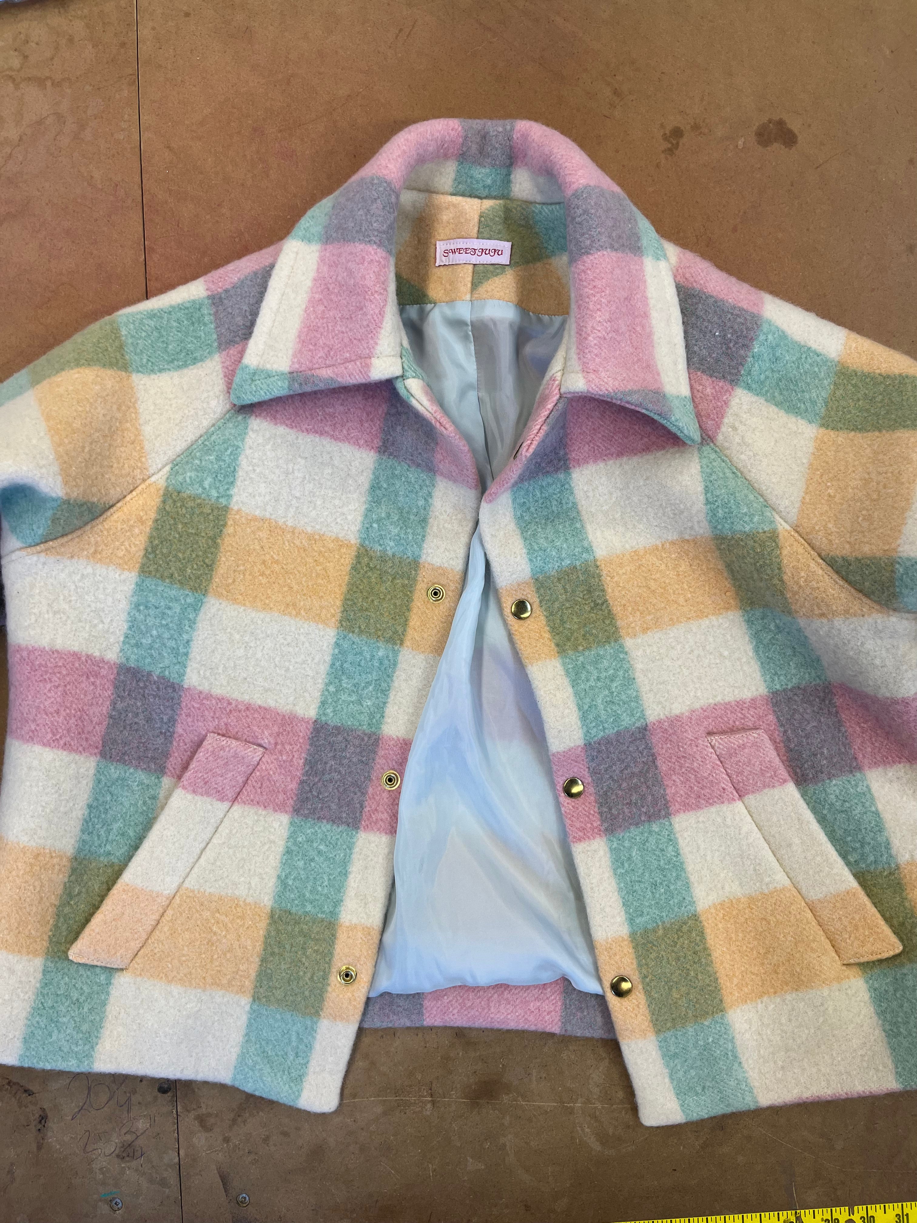 Sweet Juju Pastel Cream Check Jacket (Pink/Blue/Orange)