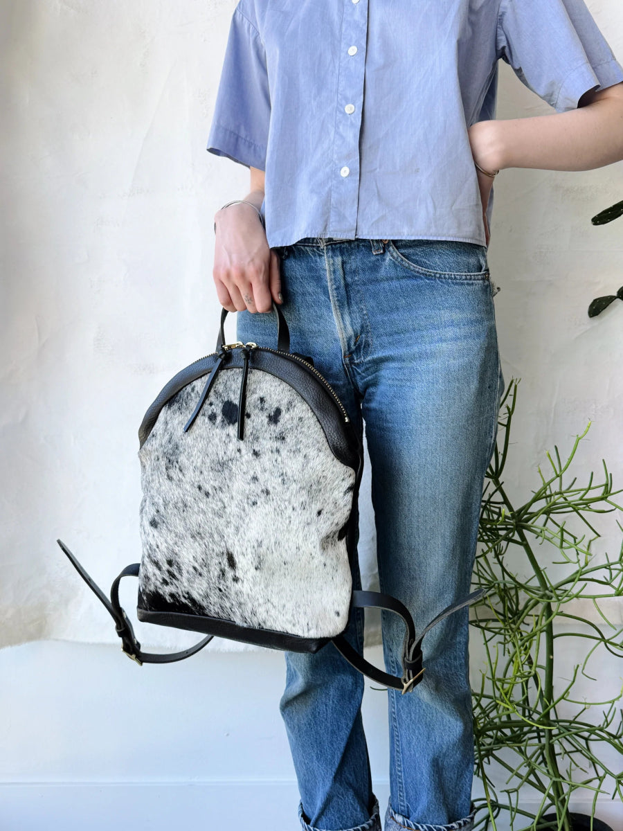 The salt & pepper bags are cut from natural cowhides, so patterns will vary from bag to bag.