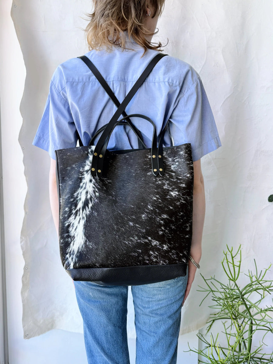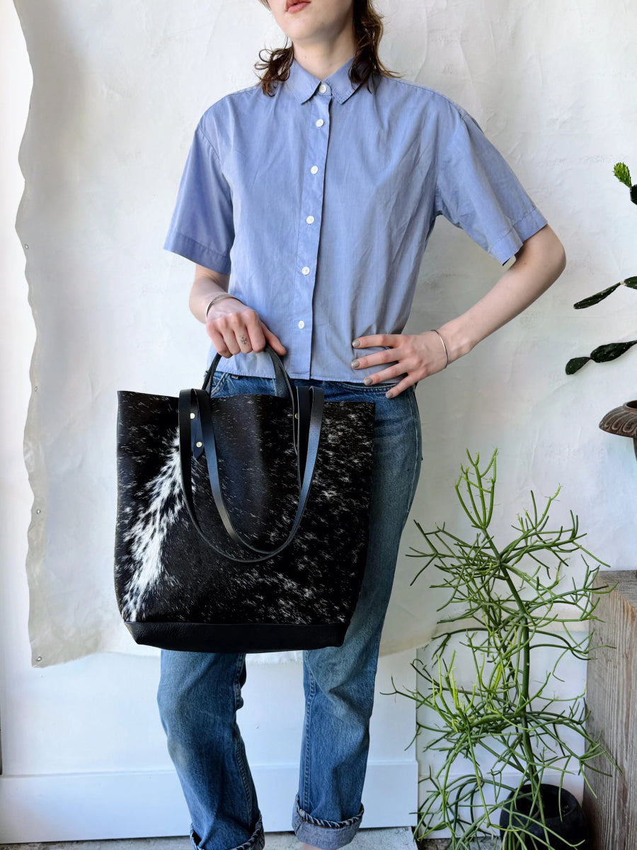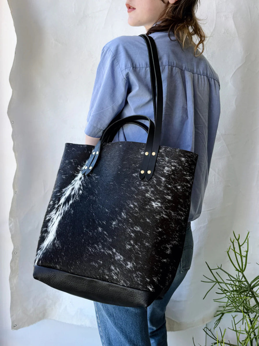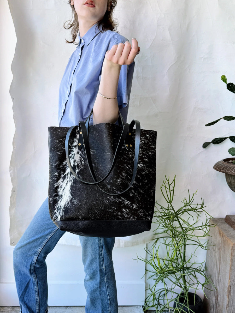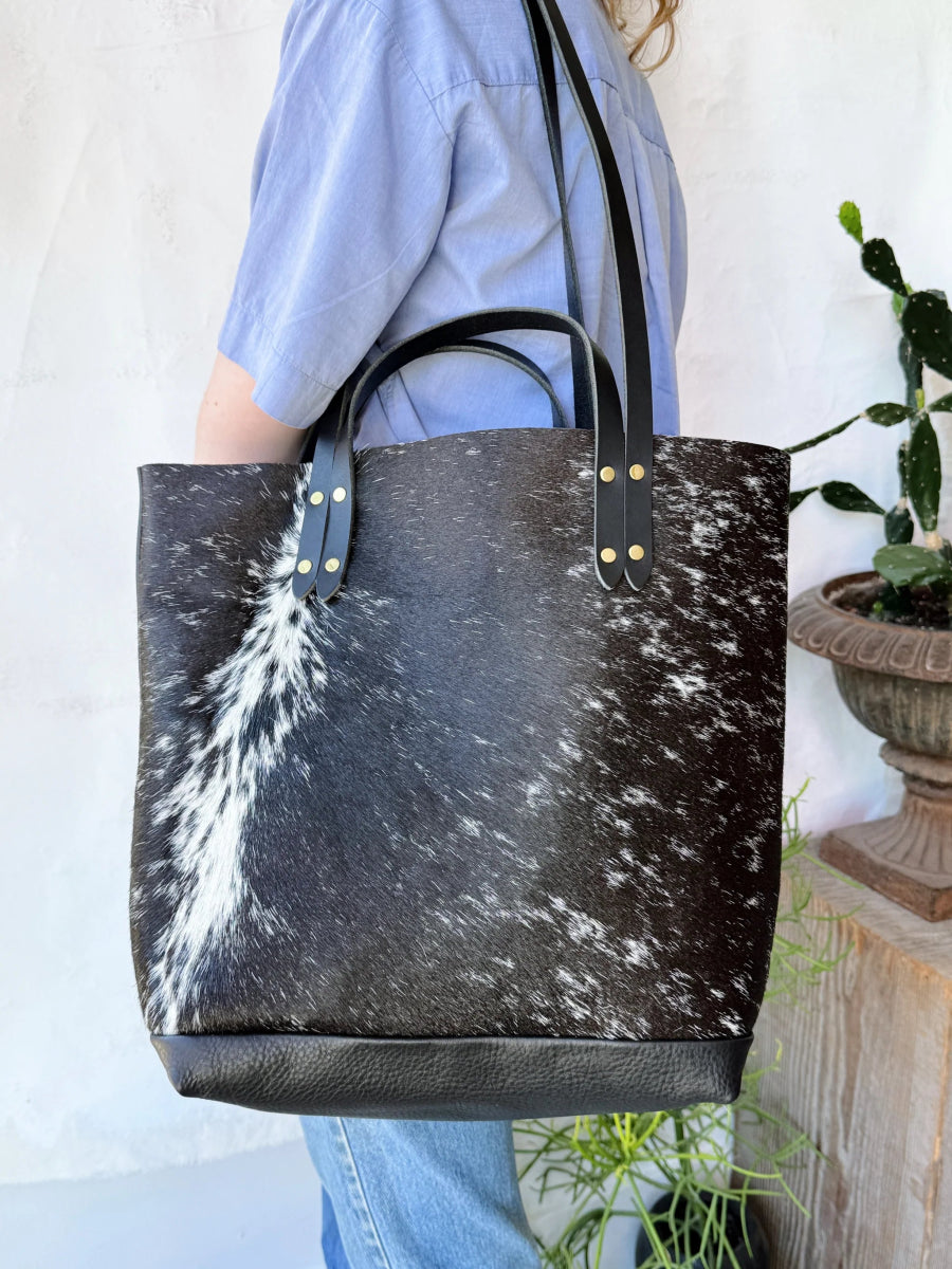 The salt & pepper bags are cut from natural cowhides, so patterns will vary from bag to bag.