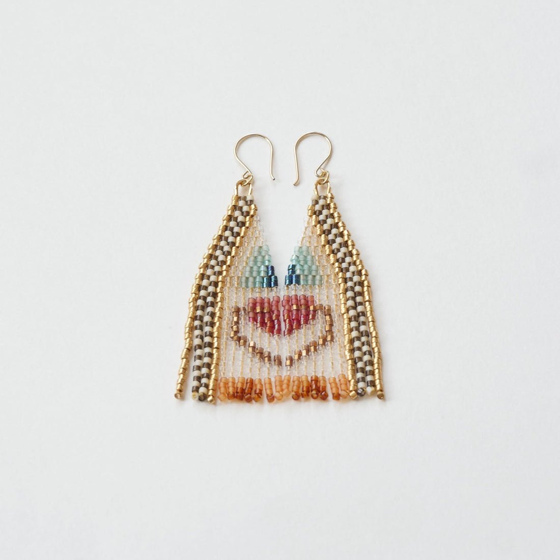 Japanese Glass Beads, Golden Nylon Thread, and the hooks are hand forged 14 KT gold filled wire for sensitive ears.