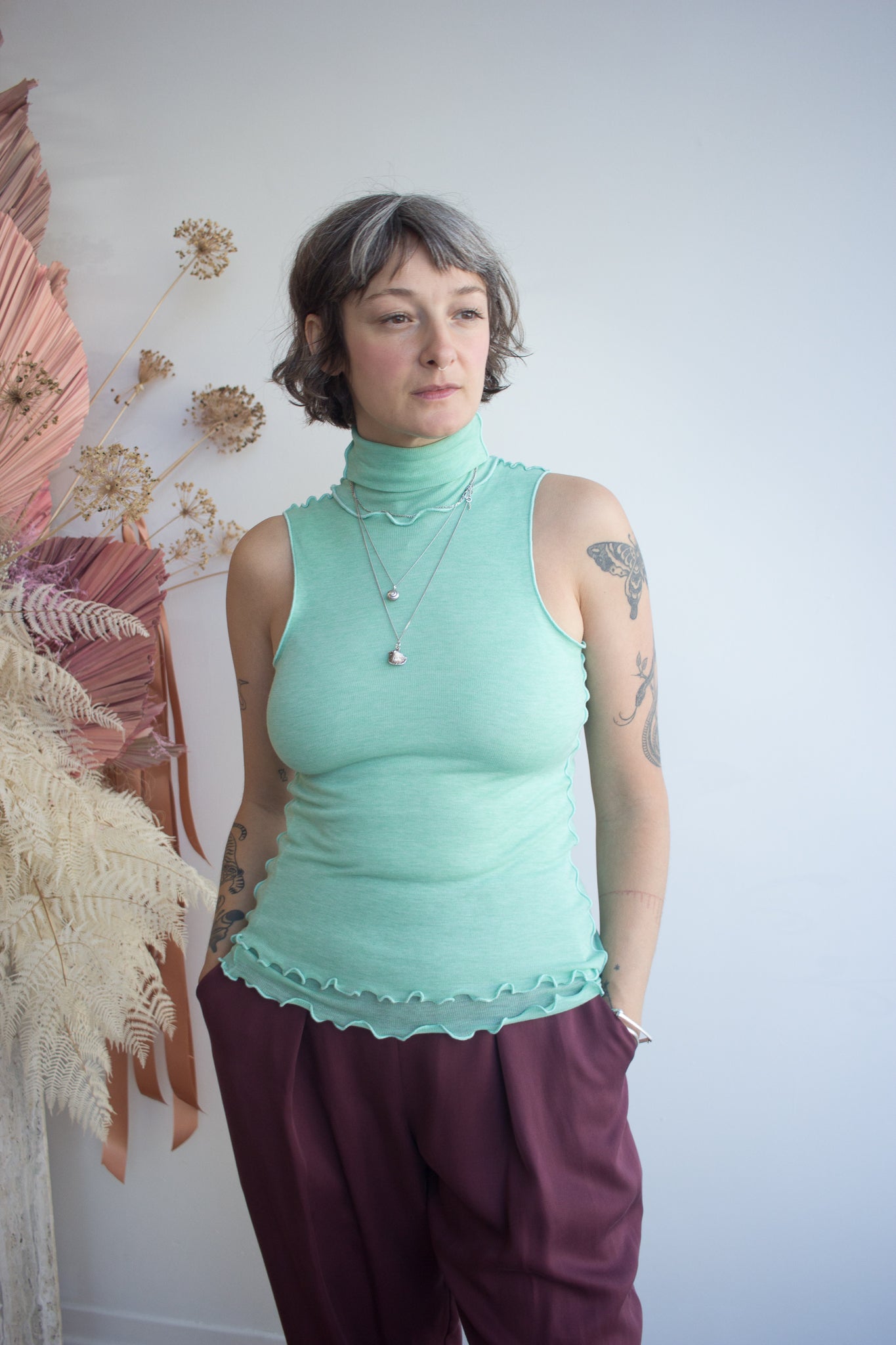 Eliza Faulkner's Loulou Top is a sweet sleeveless turtleneck inspired by the popular Jane Turtleneck also from this designer! It's perfect for wearing on its own or layering with other pieces. Made out of a blend of tencel and wool, it is soft and slightly sheer. We adore the cute ruffle and exposed seam details, signatures for the brand.