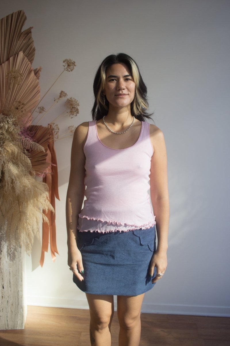 Eliza Faulkner's Becca Top is a sweet sleeveless knit tank. It's perfect for wearing on its own or layering with other pieces. Made out of a blend of tencel and wool, it is soft and slightly sheer. We adore the cute ruffle and exposed seam details, signatures for the brand.