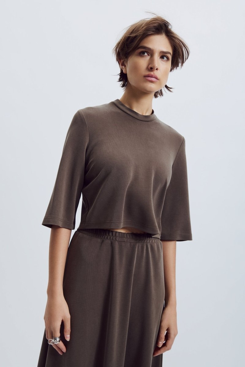 Eve Gravel's Iset top is an ultra chic, comfortable classic! This slightly cropped top features a round neck, and relaxed shape that drapes elegantly along the body. The soft ribbed fabric feels so plush, you'll be turning to this top time and time again.