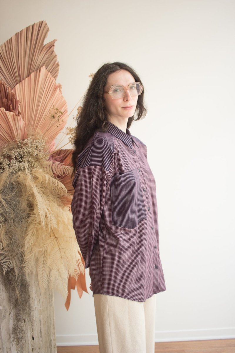 Slightly oversized shirt with a perfectly balanced cut – not too long, not too short. The Menika Shirt by Eve Gravel features a practical front pocket and delicate pleats on the sleeves, adding a subtle yet interesting detail. This piece is a must-have for the season, easy to pair and perfect for autumn. The combination of stripes and checks adds a dynamic, vibrant touch to the design.