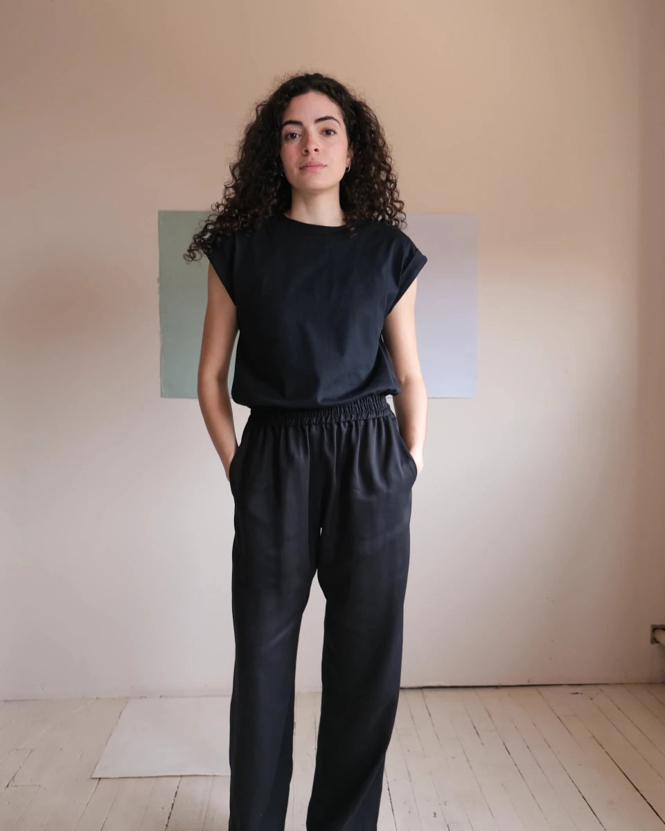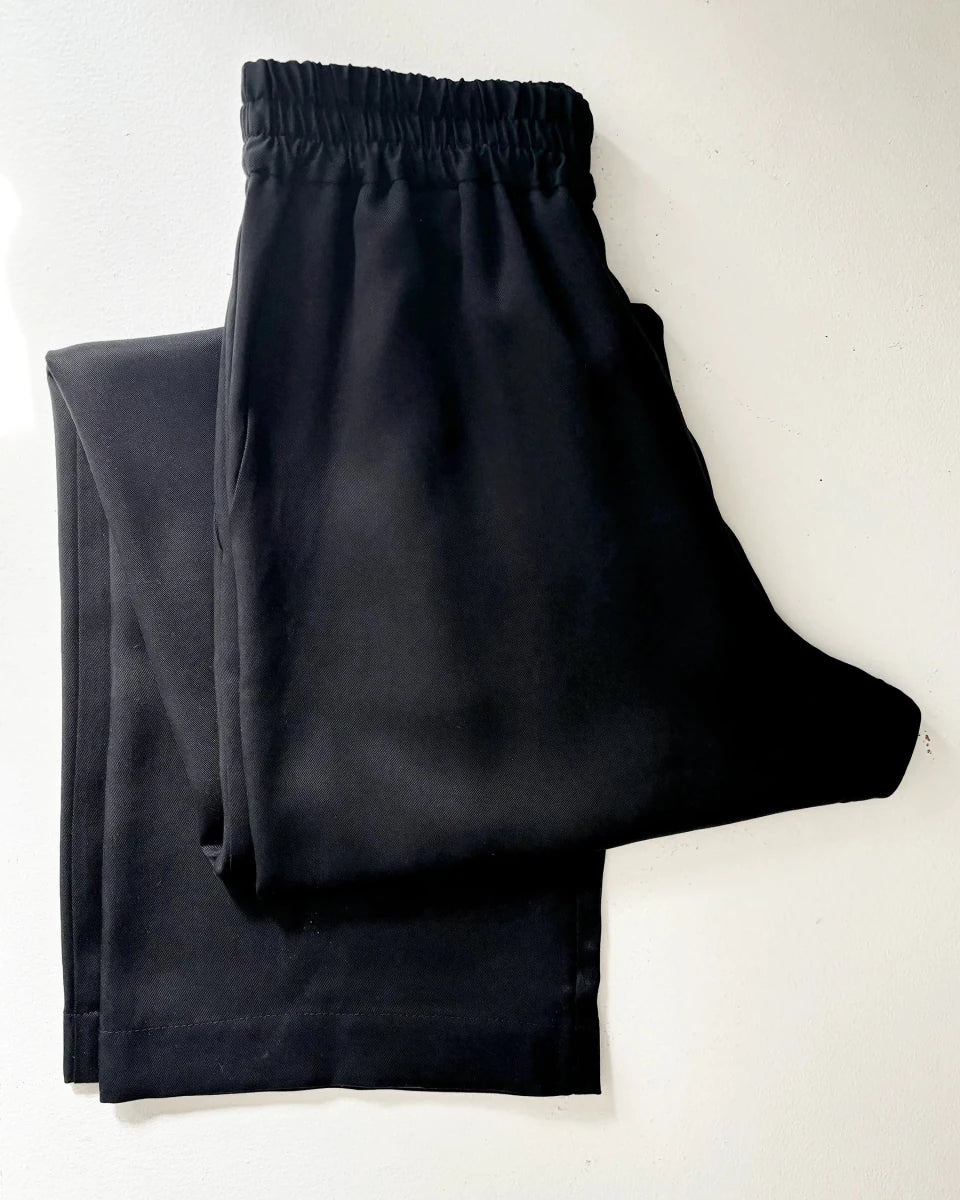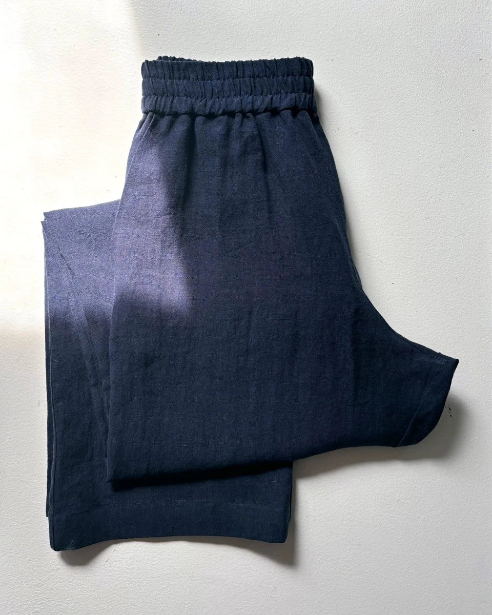 Atelier B's loose-fitting pants are a classic, especially when made with light and fluid fabrics! The linen and Tencel fabric lets the body breathe and move, making them as perfect for lounging as they are for wearing out in your everyday life. Featuring a comfortable elastic waist with stitching and side pockets. Pair with a simple tee or button up for an effortlessly put together everyday look. These pants fit both masculine and feminine proportions.