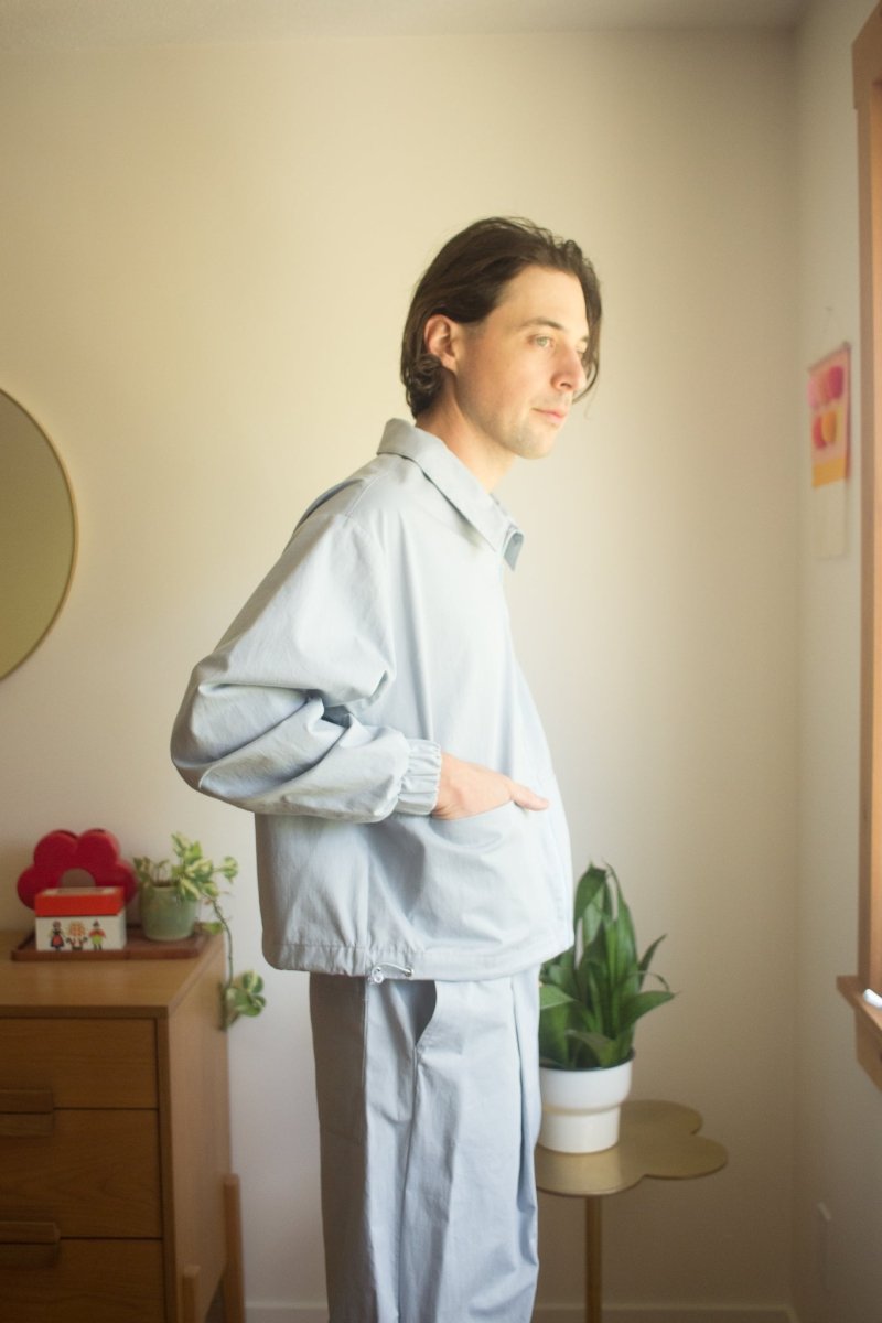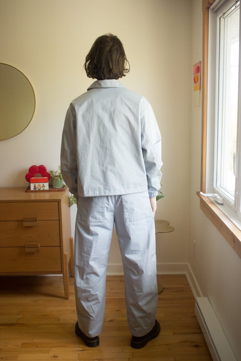 - Adjustable bungee cord at the waist and patch pockets at the back.