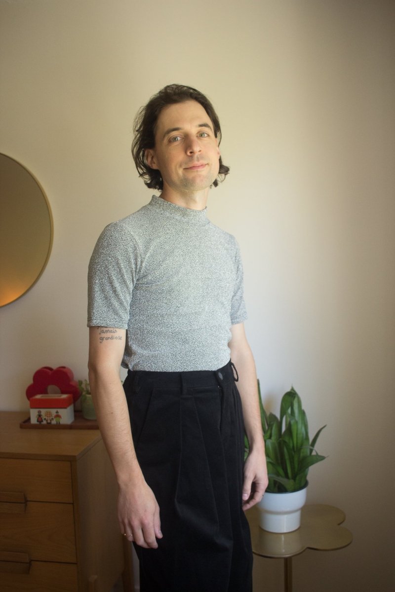 Pascal is wearing S, Marie is 5'6" and is wearing XS