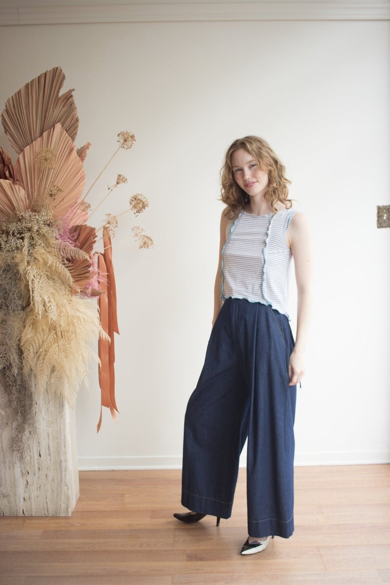 The Dario pants by Veri are a best-seller, and for good reason! The Dario trousers, this time in denim, are as versatile as they are elegant. With its deep front pleats and wide legs, you will not go unnoticed, while the luxurious and soft cotton makes it the elevated basic that your wardrobe is missing.