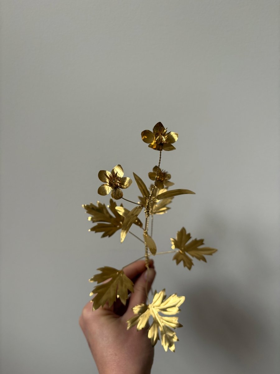 Handmade brass flower stem of a wild wood rose by Atelier Nature Morte. Each leaf and petal is hand made one by one and assembled into these gorgeous heirloom quality flower stem to adorn your home year round.