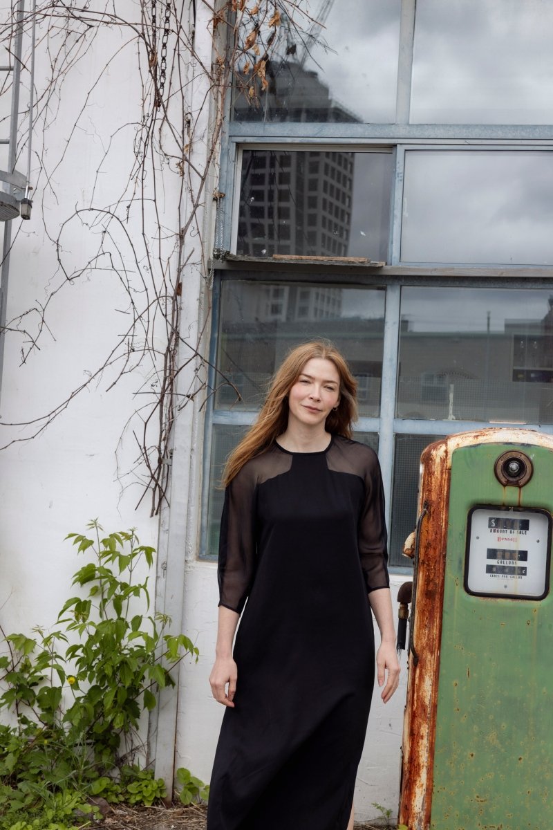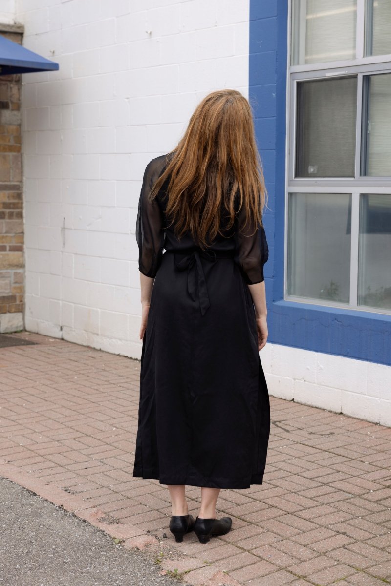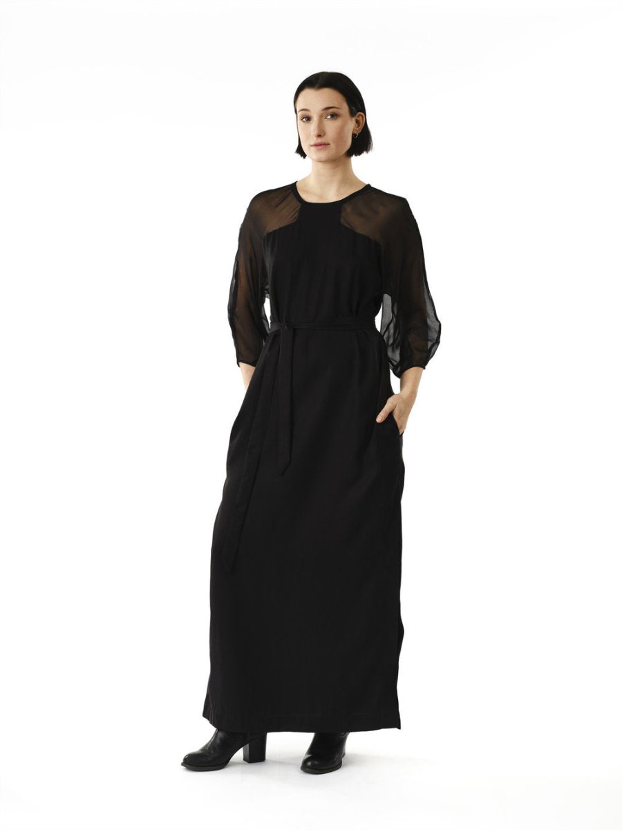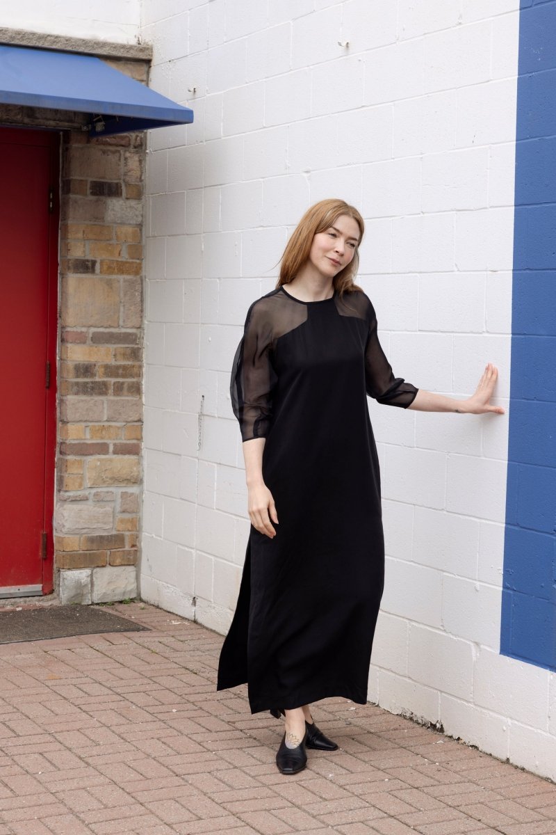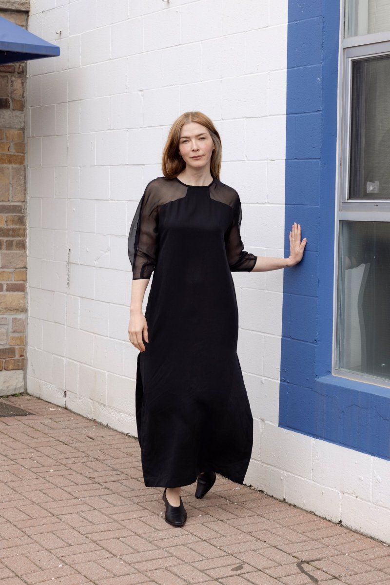 The Betana Dress by Jennifer Glasgow features 100% silk voile sleeves and beautiful Tencel bodice, she is a show stopper! We love classic yet strong, feminine forms. The Betana can be worn with or without the matching belt, offering two completely different feels to this gorgeous dress. The Betana is complete with pockets and it is easily pulled over the head with a small button at the back of the neck.
