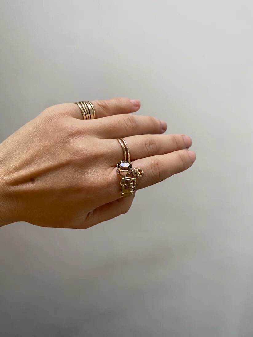 Elaine Ho 14K Gold Ring (Smokey Quartz, Spessartine Garnet & Rutilated Quartz)