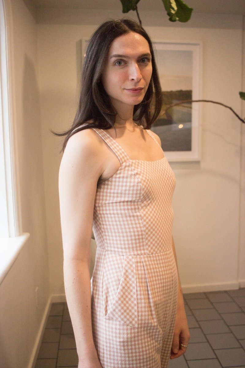 The Roadrunner Jumpsuit by Birds of North America is a tailored, wide leg jumpsuit that's made of medium-weight, organic cotton gingham. It has playful directional gingham details on the top, as well as the front pockets. The neckline is faced, and it closes with a back invisible zipper.