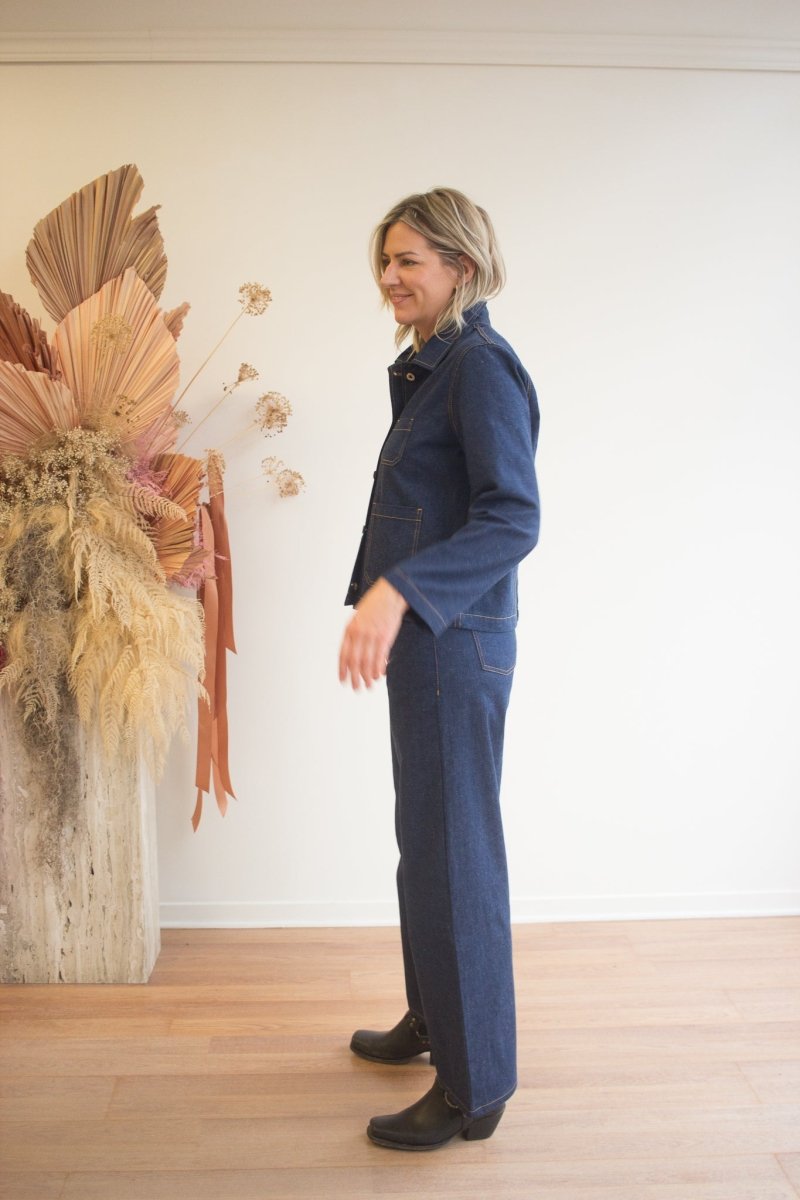 Channeling the spirit of vintage French workwear, the 2x1 Dungaree Denim blends timeless style with a touch of modern edge. Crafted from 9.75oz Japanese denim, this mid-indigo blue offers a bright, faded look with a subtle neppy texture and a grey weft for extra character.