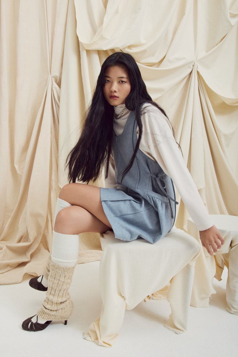 A tweed mini ‘romper’ dress, perfect for layering over turtlenecks and tights for an ultra-cute winter look! For autumn, pair the Lilith Dress with a simple t-shirt and some sneakers for a casual yet stylish vibe. The tweed fabric beautifully complements the ribbed details and side knots, while the balloon pockets add a subtle volume, giving the piece dimension and a playful touch.