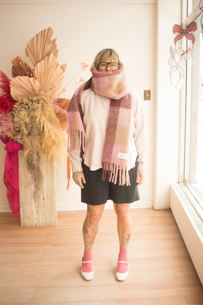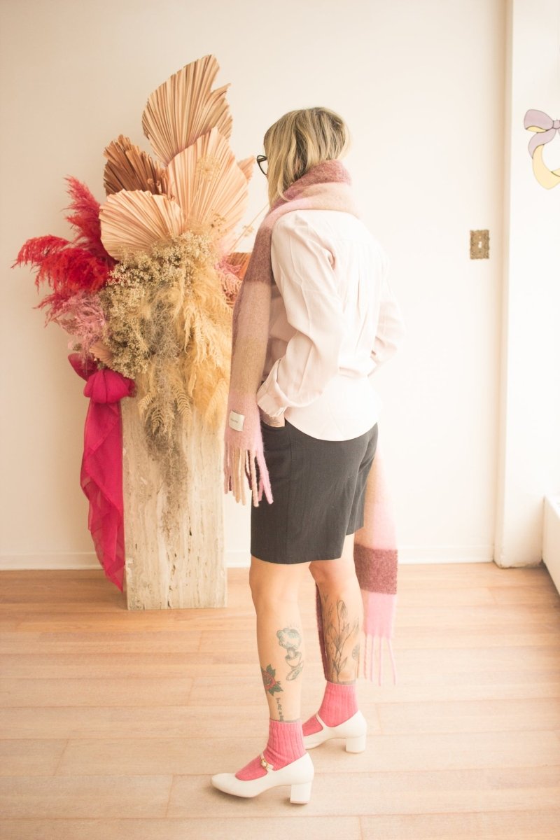 Eliza Faulkner Checked Mohair Scarf (Pink)