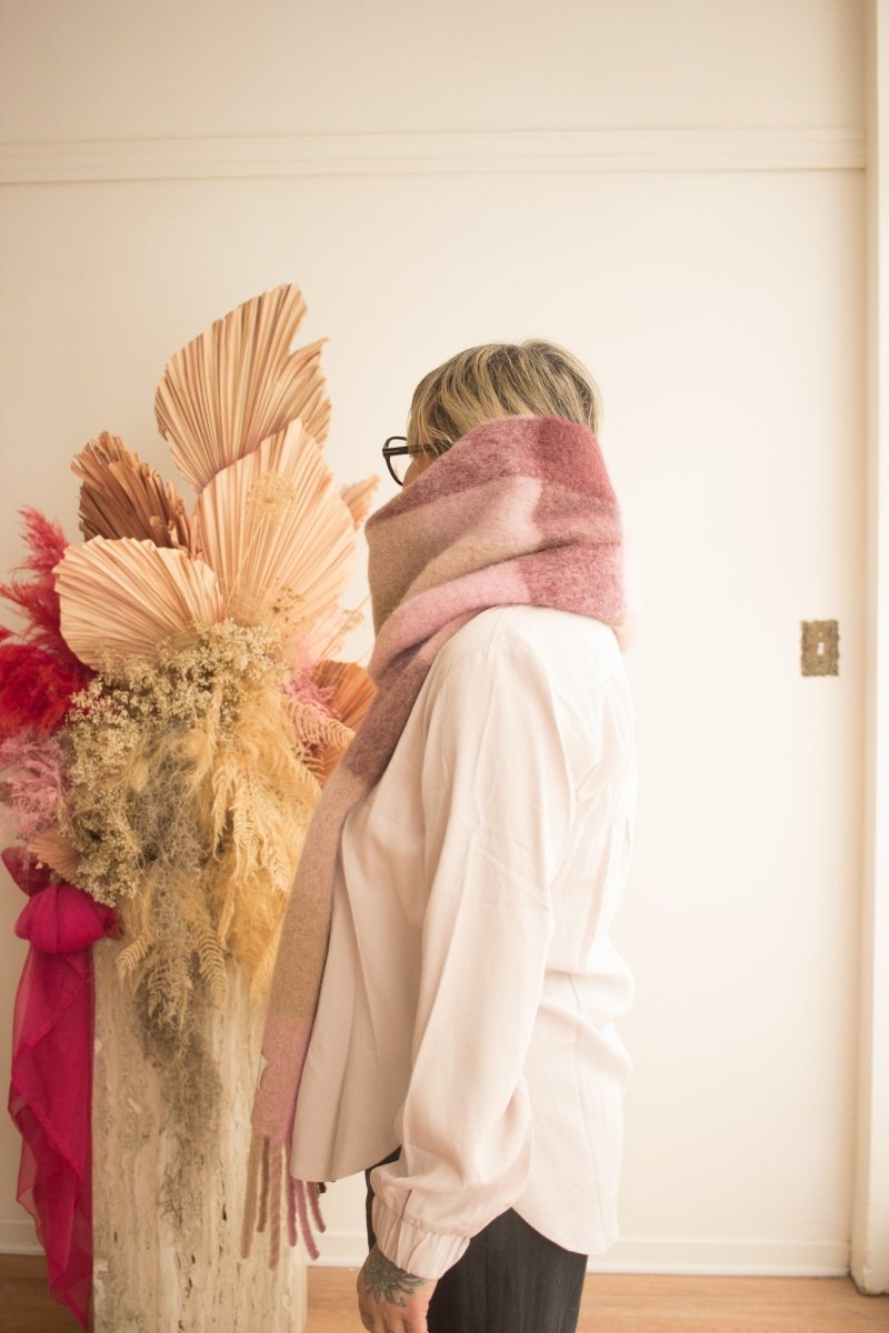 Made from a soft mohair and merino blend, Eliza Faulkner's luxurious pink and green checked scarf keeps you feeling warm and looking good even on the coldest days. Style it with a monochrome outfit for an extra pop of colour or keep it cute and snuggly in a casual, comfortable outfit!