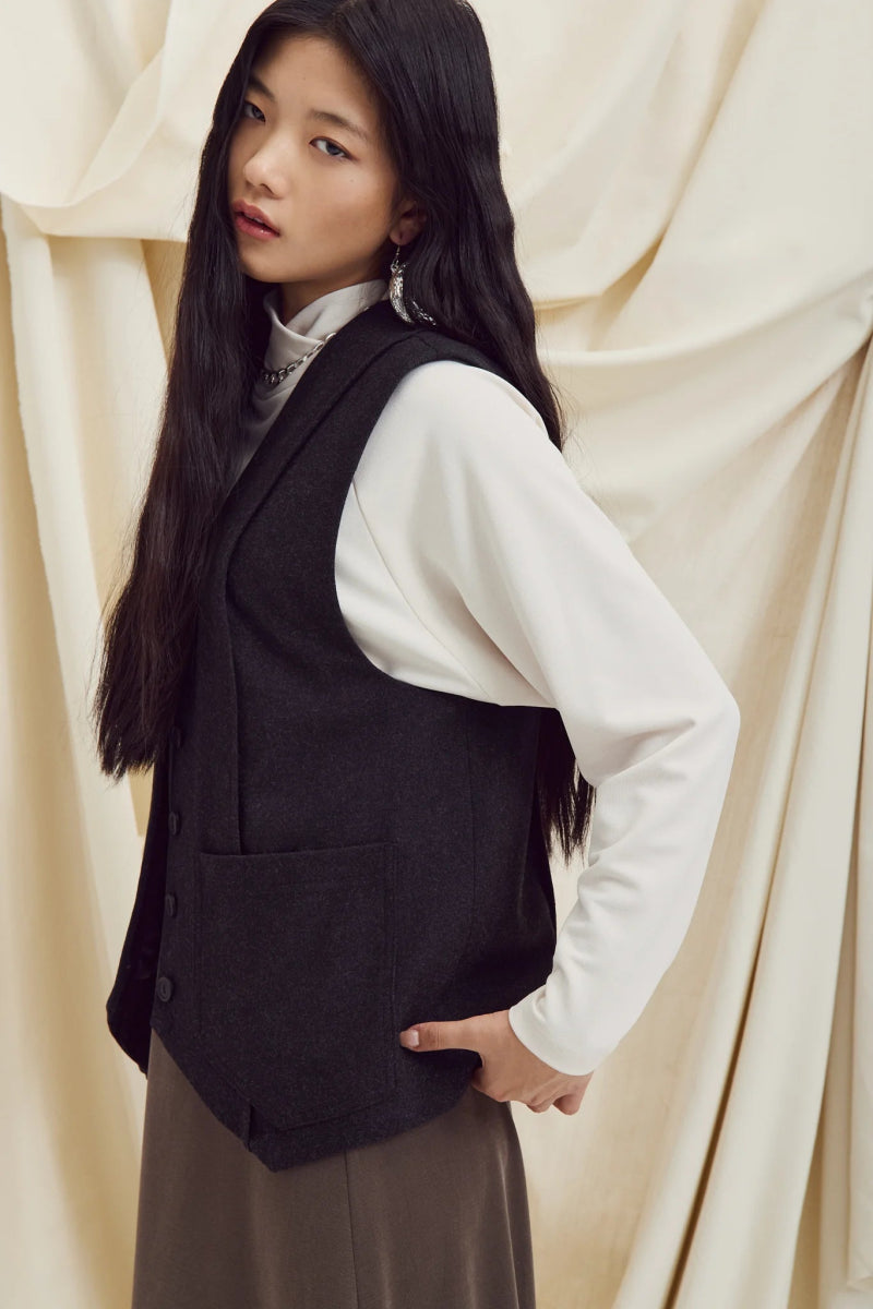 The Tosca by Eve Gravel is a sleeveless tweed jacket inspired by the one you may have seen on your grandfather! The vintage style is perfectly reinterpreted for a look that's both timeless and modern. Wear it over one of our basics or a simple white t-shirt and you're ready to go! Its slight point at the front accompanied by ribbing on the front and back adds a fascinating and original texture. It also features two patch pockets at the front and is lined for optimal comfort!