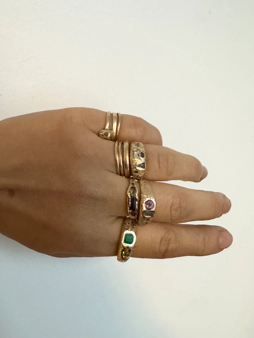 A one of kind ring by Elaine Ho This ring is textured solid 14K yellow gold ring that includes a variety of beautiful Canadian gemstones.