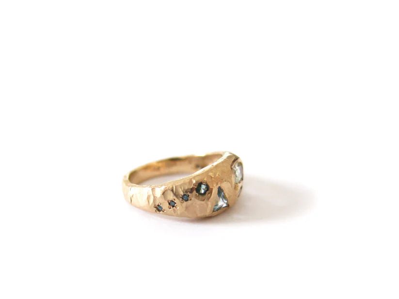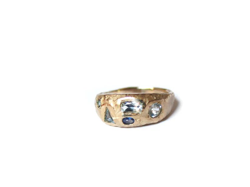 Elaine Ho 14K Gold Ring (Sapphires, Aquamarine & Blue Diamonds)