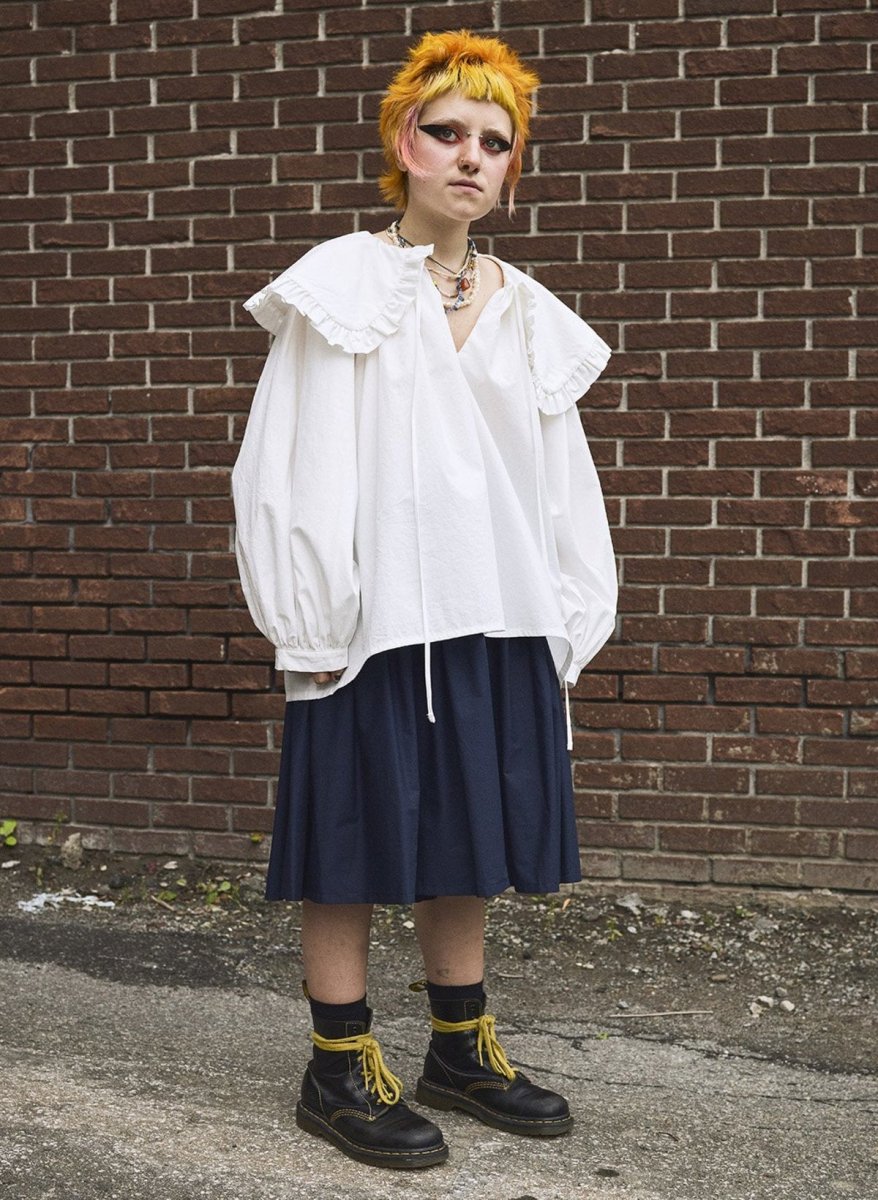 Eliza Faulkner's Sawyer Top is back for another season and we couldn't be happier. This is one of the longest-running and bestselling styles from the brand and for good reason. This whimsical cotton top has long puff sleeves, a relaxed fit in the body and a signature oversize collar that is ideal for layering under other pieces. We love this season's update with the contrast tie details. You'll be reaching for this one all the time.