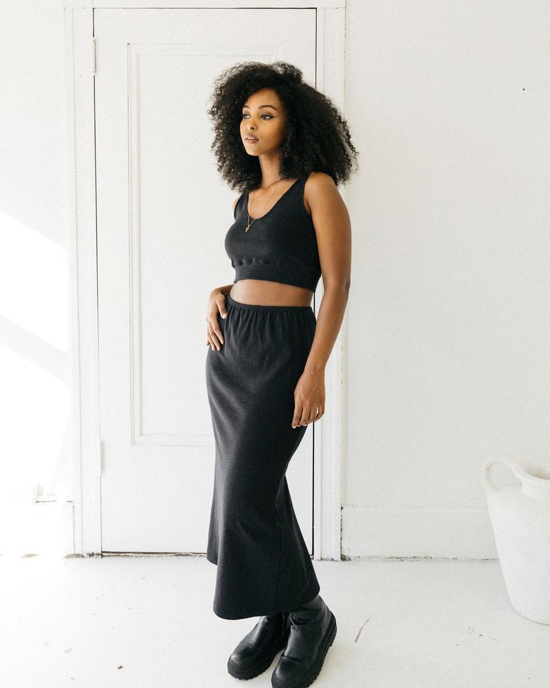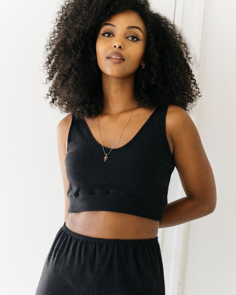 The closet staple you were missing! Made out of organic cotton, this cropped tank has a form fitting mid-weight knit that lays flat on the ribbed cage. It has a scoop neck, tank straps and a hem that hits just below the waist. Style it underneath other blouses during the colder months, or on its own with a pencil skirt or shorts during the summer months.