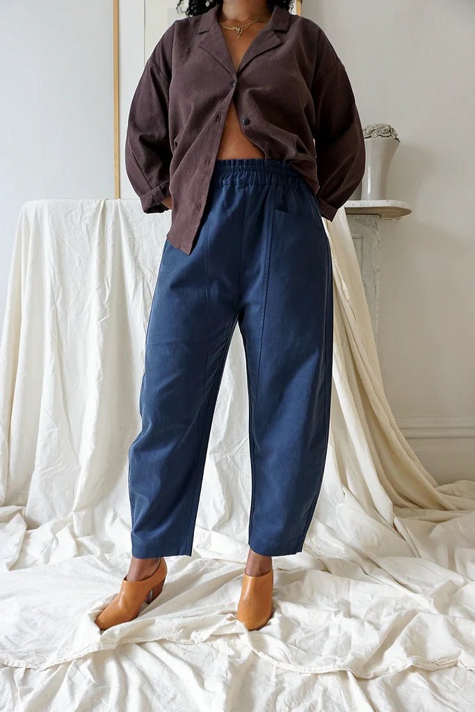 Ursa Minor's Flor Arca Pants are the perfect comfy-yet-chic pant for any season. Featuring an elastic waistband, these pants have two front pockets and front panels on the leg. They have a tapered, slouchy leg, similar to a boyfriend jean, making them a great relaxed choice. The blend of cotton and tencel give these pants a durable yet silky feel with a slight sheen that can be dressed up or down with ease. Pair them with your favourite jewelry and blouse for a night on the town, or a relaxed t-shirt for an effortlessly cool, casual look.