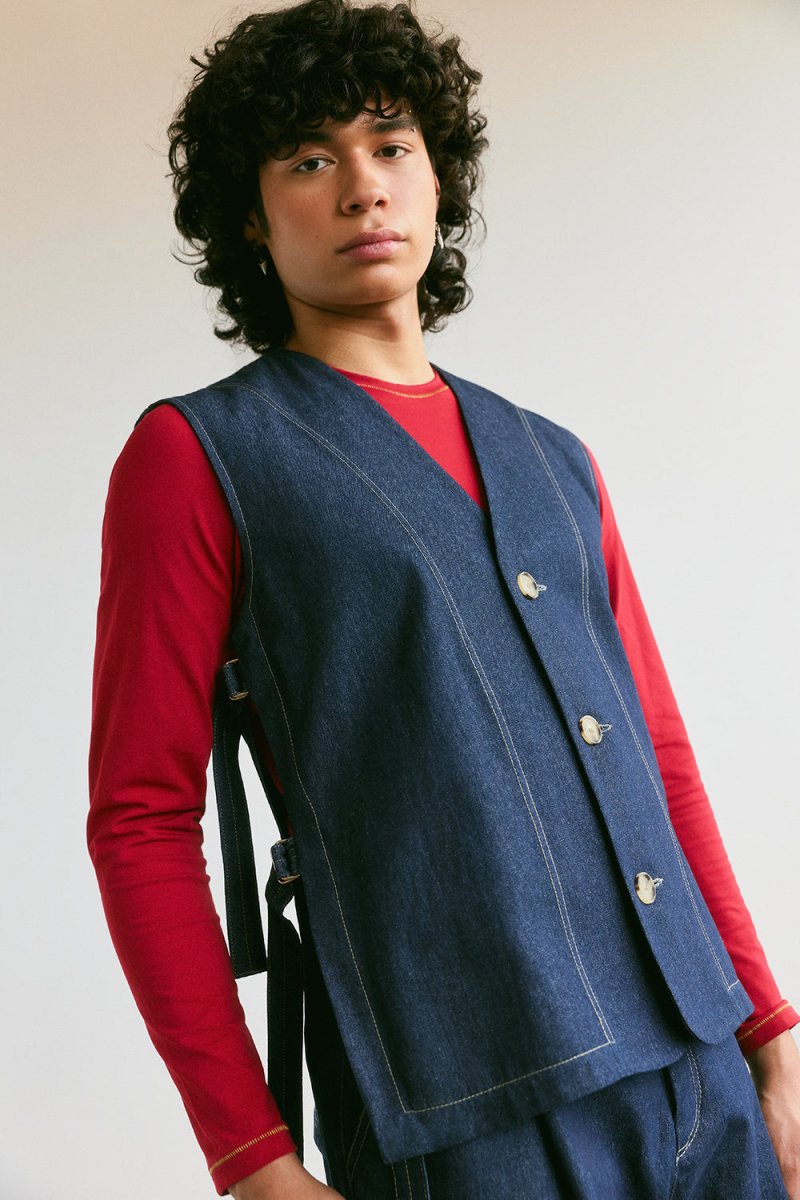 The Sabato Vest by Veri is structured yet casual. This super cool 3 buttoned vest offers infinite layering potential while being highly comfortable and highly functional! Featured pull tab straps on either side to tighten or loosen the fit depending on your style and fit preference.