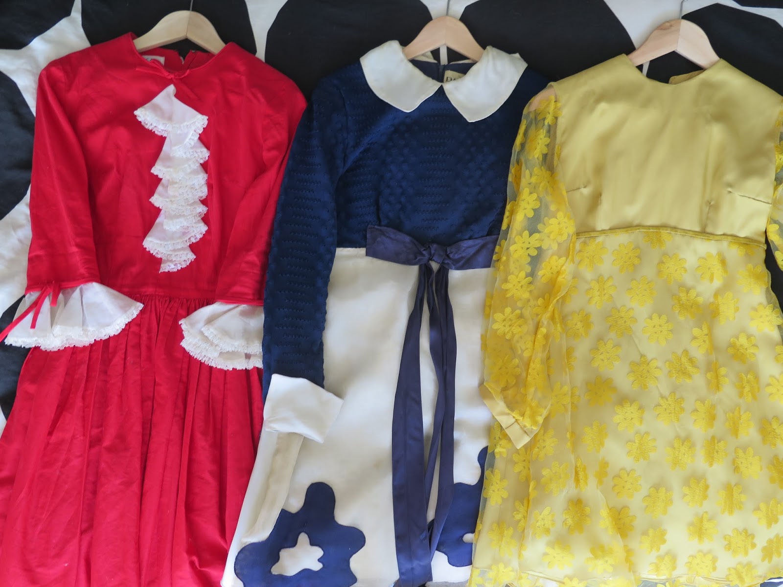 "I love collecting beautiful vintage dresses. It’s always the little details that make my heart stop: a delicate lace collar or cuff, a bit of embroidery, or a little bow. Two of these dresses were found at prior vintage sales hosted by Victoire and White Elephant. Aren’t they gorgeous? As much as I love admiring theses dresses, I’m not the kind of person who keeps her vintage hanging neatly in a closet. These babies have lived! I take them out dancing, I pack them in my suitcase and I take them on adventures! In fact, the one in the centre has been so loved that its organza overlay was accidently ripped during a night of reckless boogying. Luckily, I know a seamstress with fairy fingers. I have very fond memories of the nights I spent in these dresses, and I love thinking about the women who wore them before me. I love wearing vintage because it makes me feel as though I am wearing a piece of someone else’s past. If you look closely, you can see the memories stitched into the seams.
