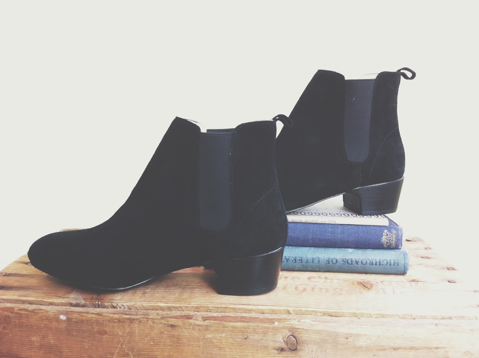 I'm head over heels for these wedges! They are made of suede and have the daintiest ankle strap. Perfect for tights and your favorite fall dresses!
