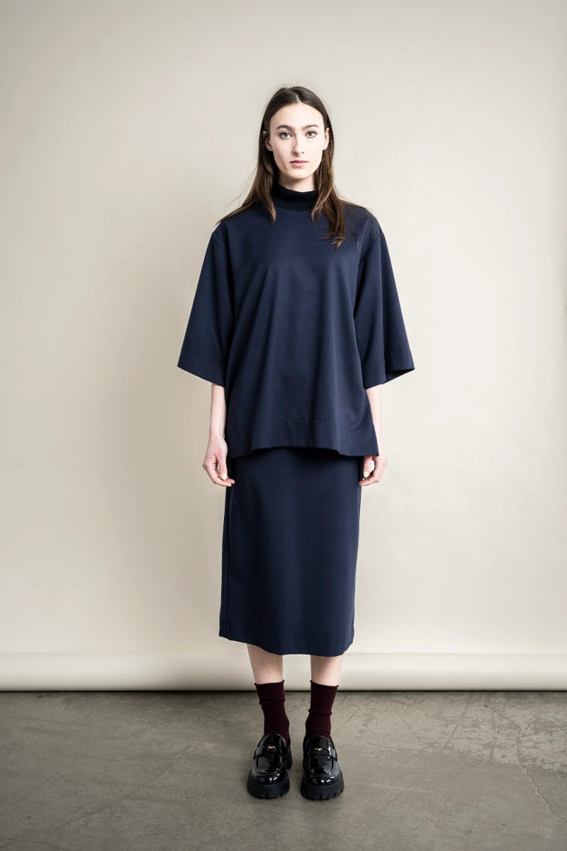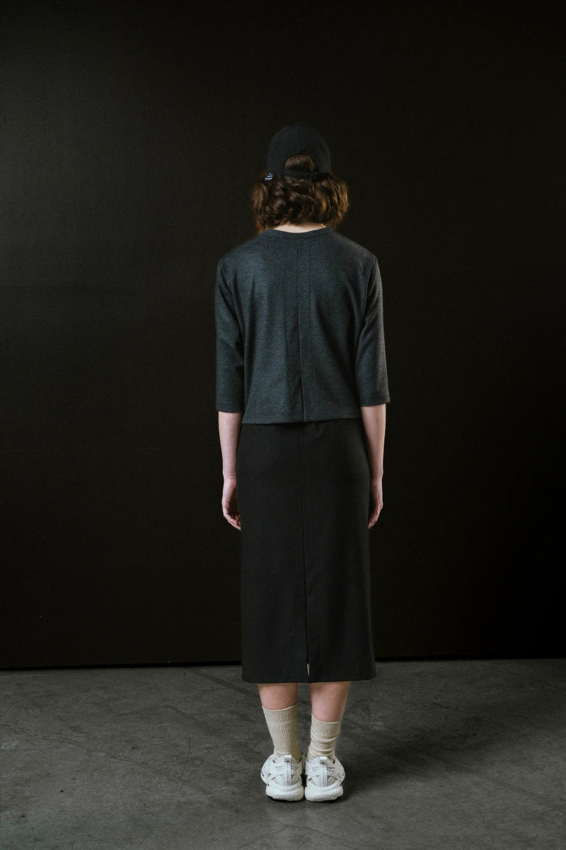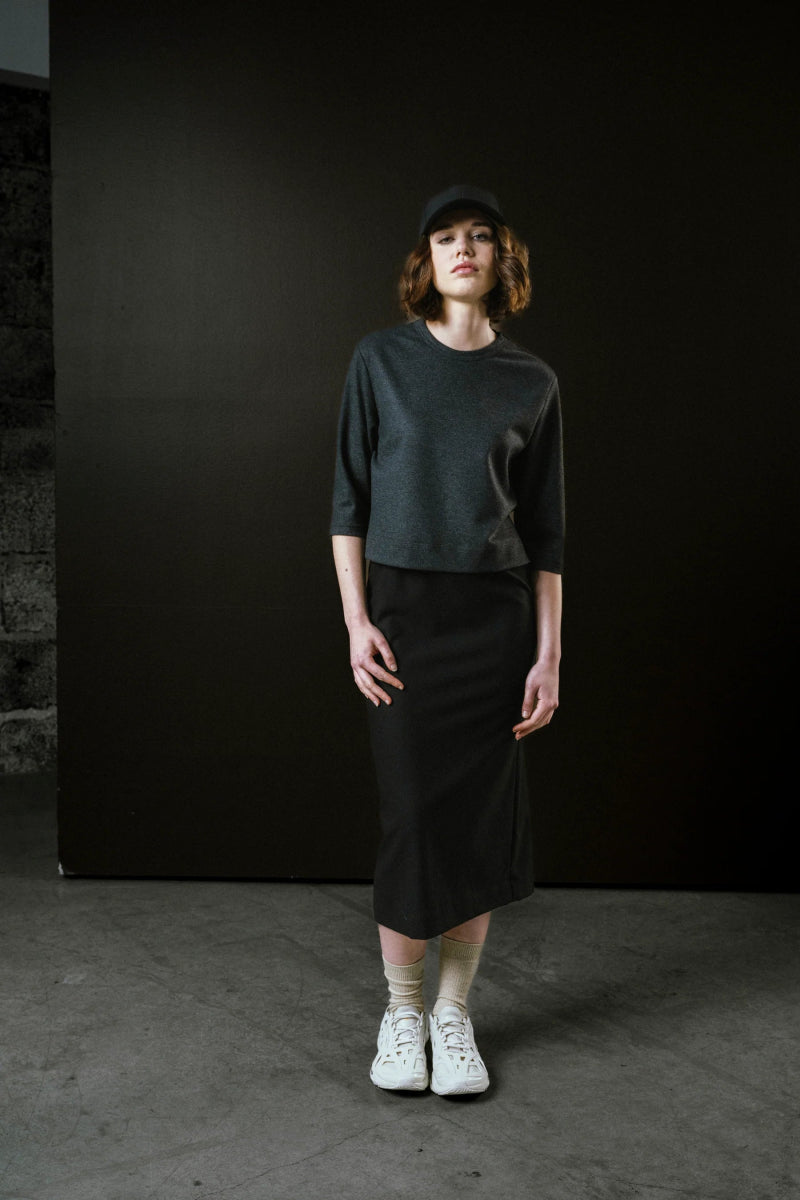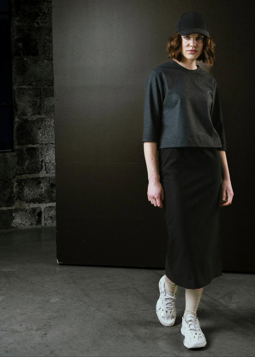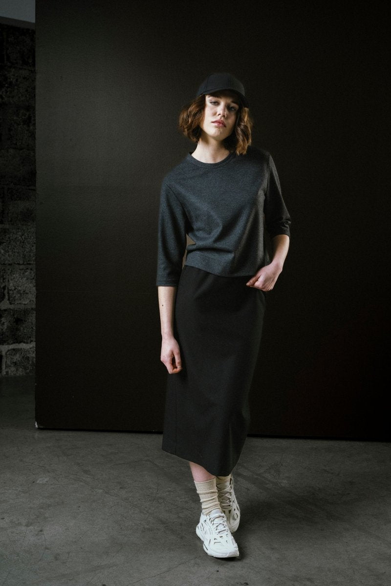 A classic modern essential! The Regent Skirt by Bodybag is a pencil skirt with clean lines and  a soft, structured finish. Crafted from a warm flannel blend with gentle stretch, it balances tailored form with comfort and ease.