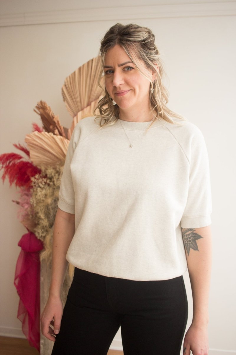Ursa Minor's Tula Tee is a short sleeve raglan sweatshirt made from a lovely thick & soft brushed cotton fleece. The Tula Tee has a relaxed fit with ribbed cuffs, bottom hem and neckline with a sleeves that hits just above the elbow. This the perfect on-the-go sweatshirt to keep you warm but to also keep your arms free for practical tasks around the home and beyond.