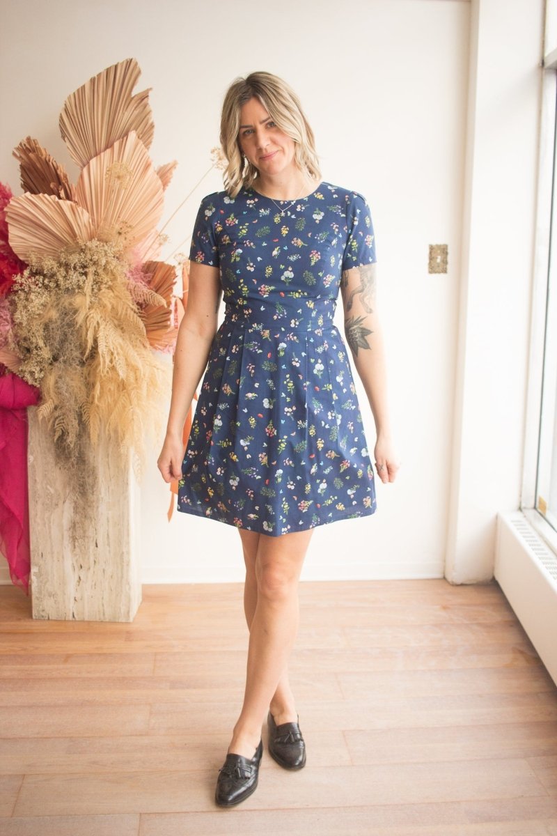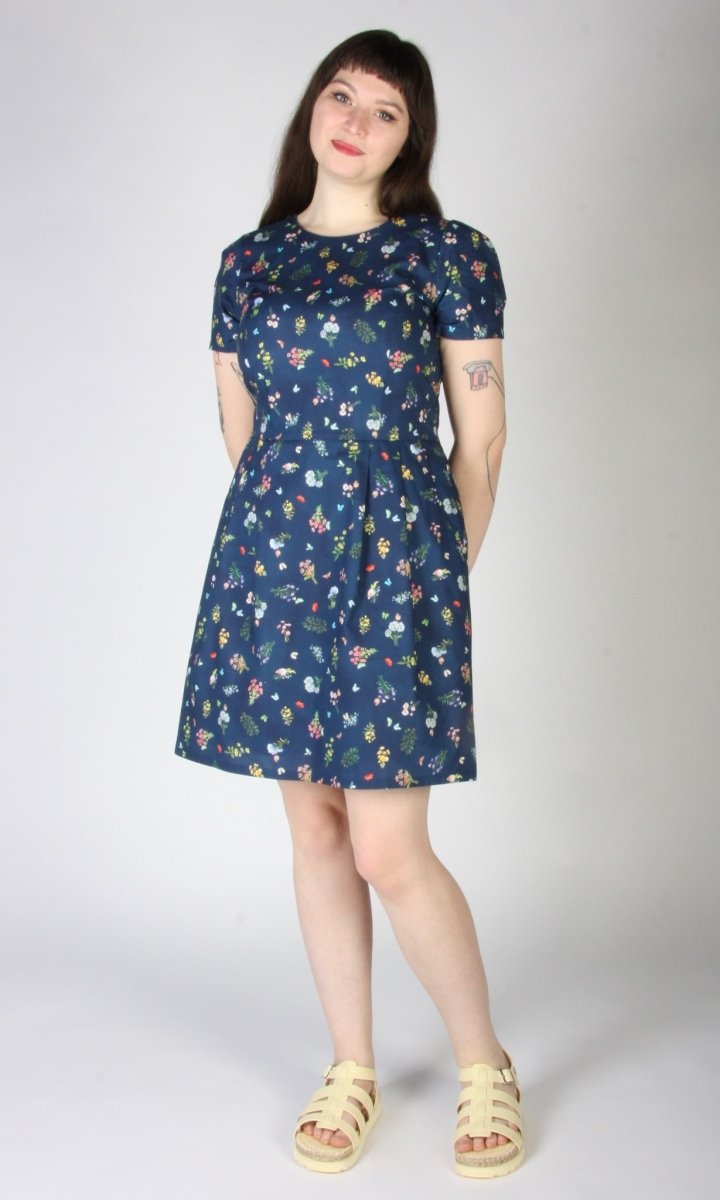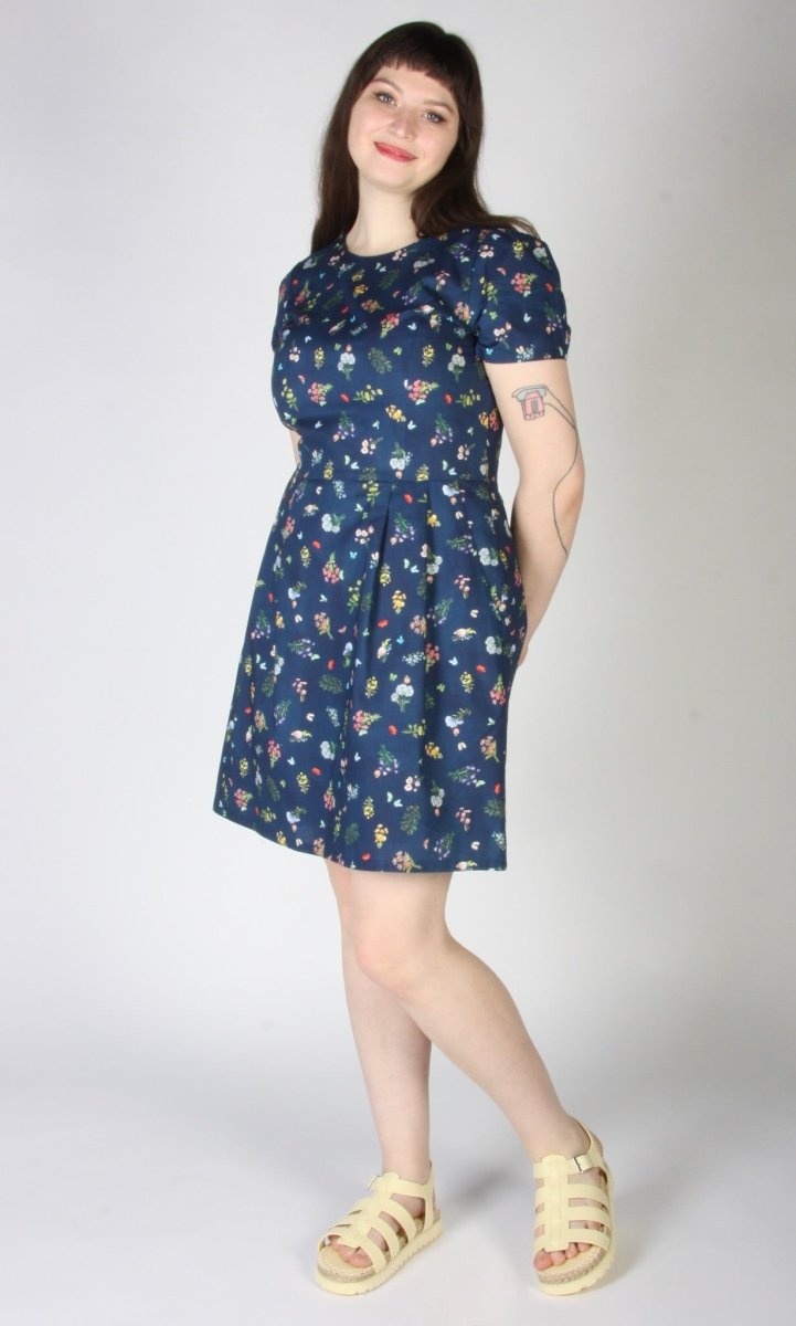 Birds of North America's Engoulevent Dress is back baby, and now up to size 20 for the first time in this cut! The Engoulevent is one of their most classic and popular cuts and for good reason! This vintage-inspired silhouette has a crew neck, short sleeves and a knee-length hem. It's fitted through the bodice, while the pleated A-line skirt flares out slightly. Plus there are generously sized hidden pockets!