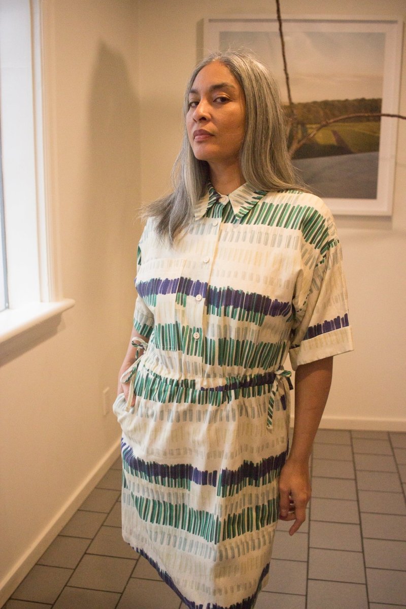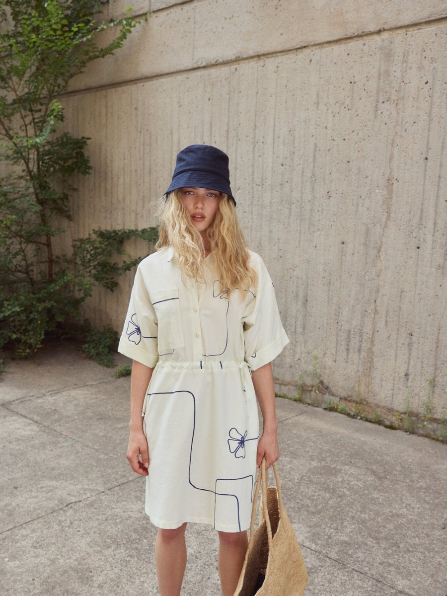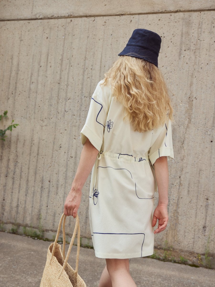 Meet the Bevin Dress by Eve Gravel! The Bevin a shirt style dress with practical side pockets and a cut above the knee, perfect for an effortless summer look! Its half sleeves and adjustable waist thanks to a cord ensure optimal comfort throughout the day. Made in an ultra-light fabric, it is as comfortable to wear as it is elegant. The prints are designed in Eve Gravel's Montreal studio making this piece even more special!