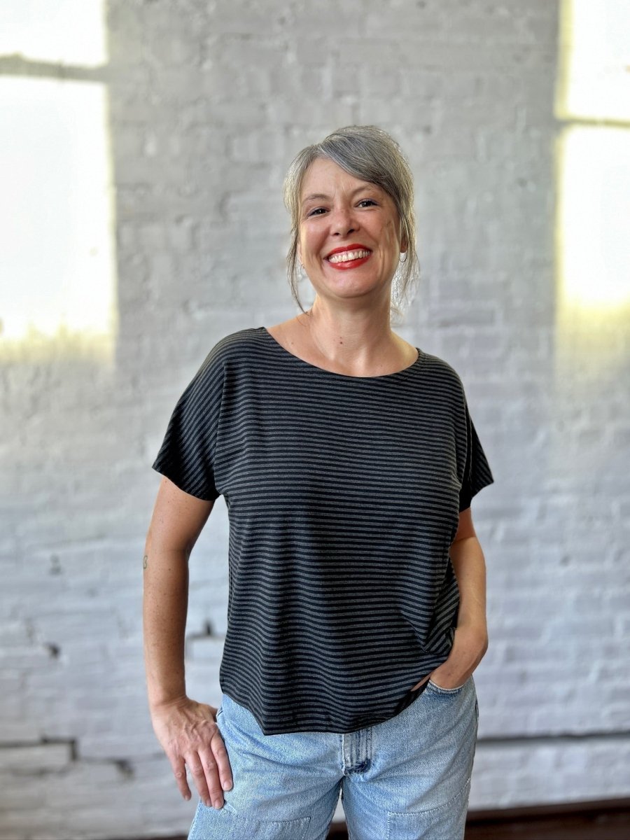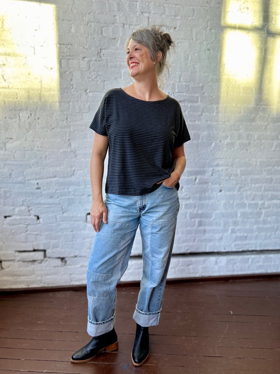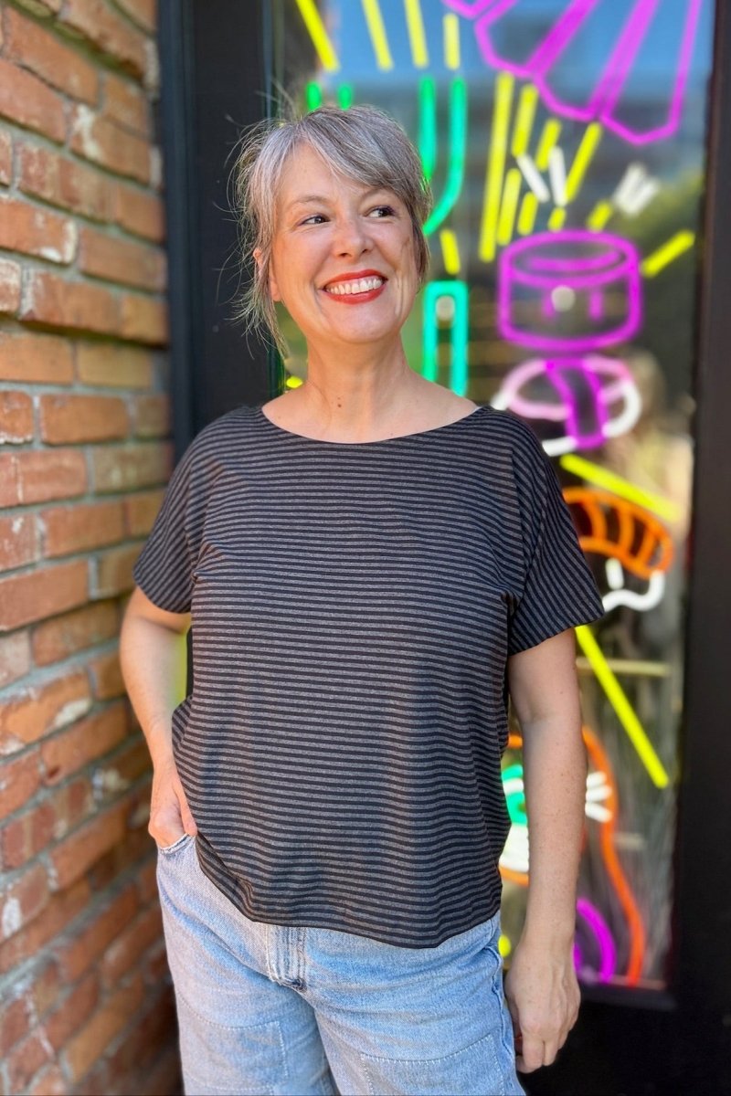 Smoking Lily Boatneck Tee (Charcoal Stripe)