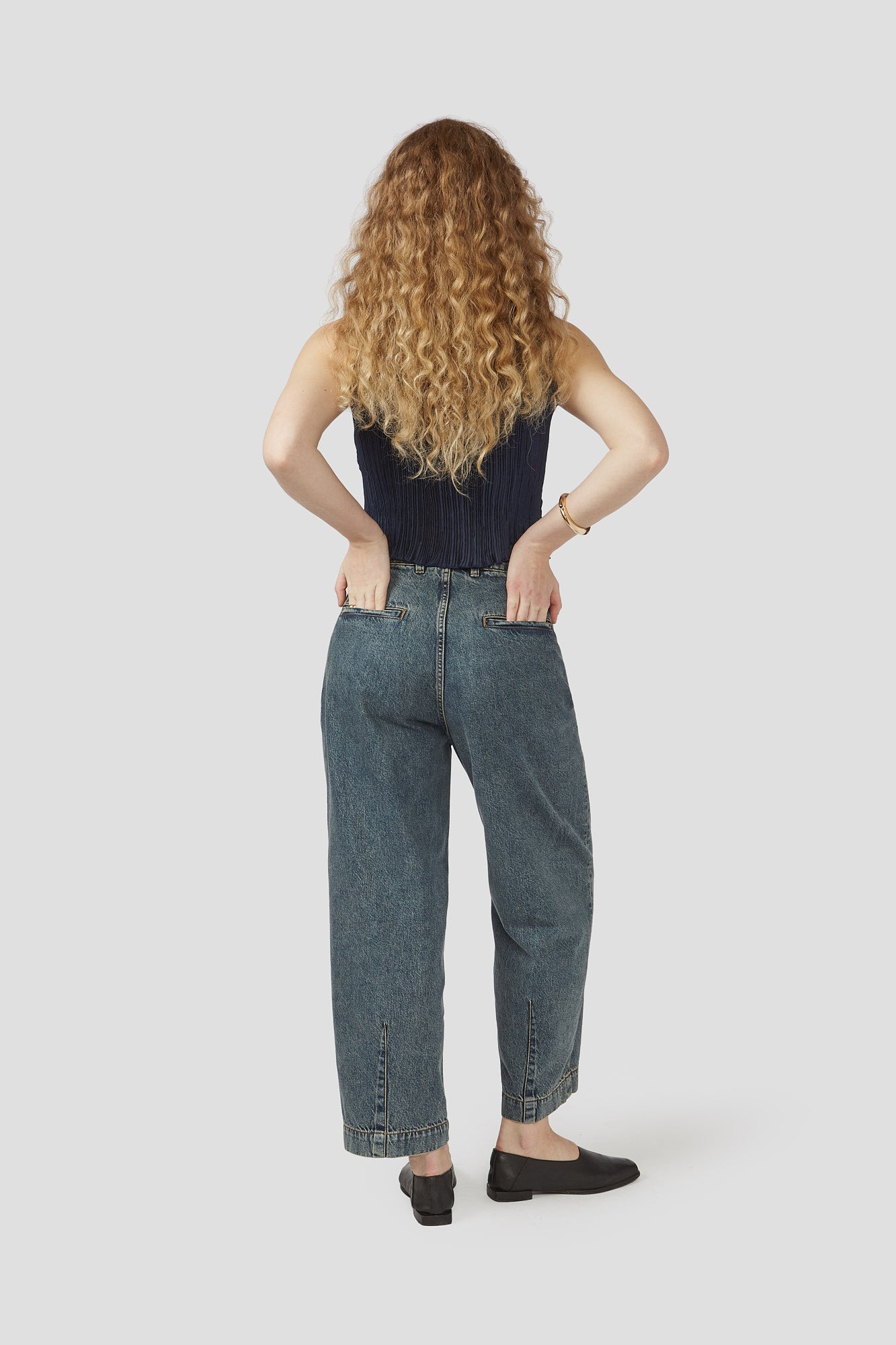 Decade Studio's Kit Trousers are a refined and relaxed staple piece to incorporate into your wardrobe. They are effortlessly cool, featuring a cropped inseam and subtle barrel leg silhouette, complete with a button fly and custom hardware. These trousers have a classic yet modern feel that can be dressed up or down with ease.
