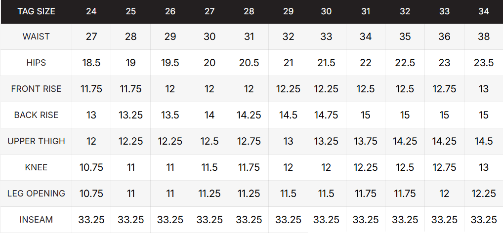Sizing Notes: These jeans fit true to size. We recommend ordering your usual size. Please size chart at the end of the photos for garment measurements. Still unsure? Send us an email!
