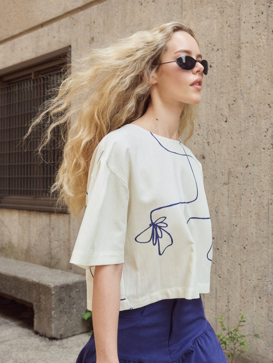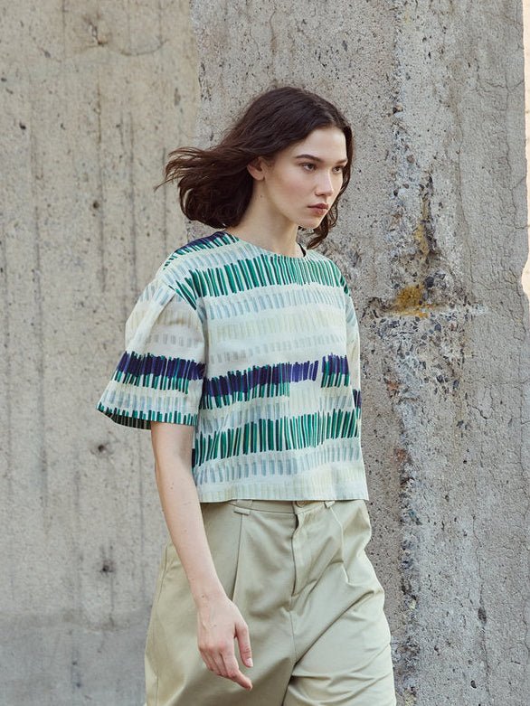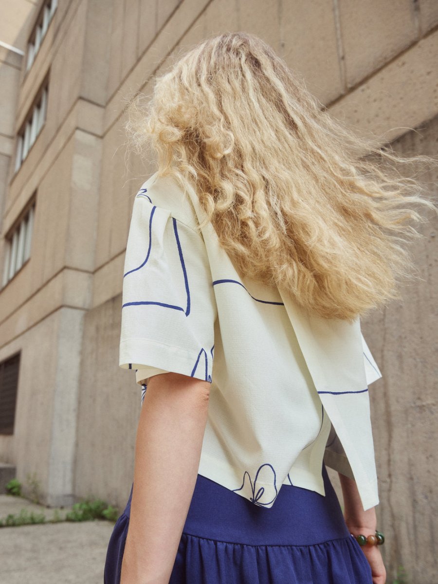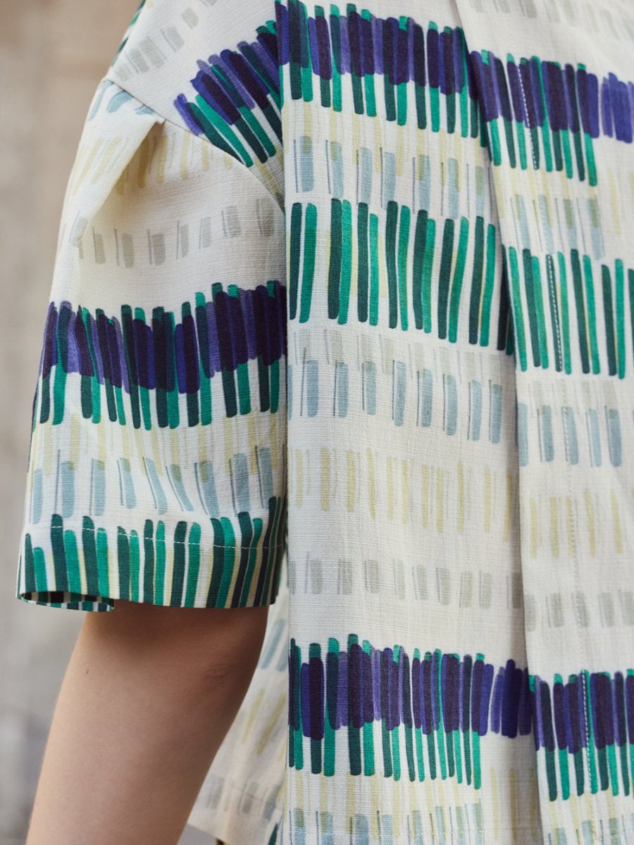 The Brooke Top by Eve Gravel is a shorted sleeved top, sublimated by a delicate fold on the top of the sleeves and an original cross back thanks to a diagonal cut.  Made from a soft yet durable cotton and viscose blend that holds its shade while maintaining a comfortable and easy feel on the body. The prints are designed in Eve Gravel's Montreal studio making this thoughtful piece even more special!
