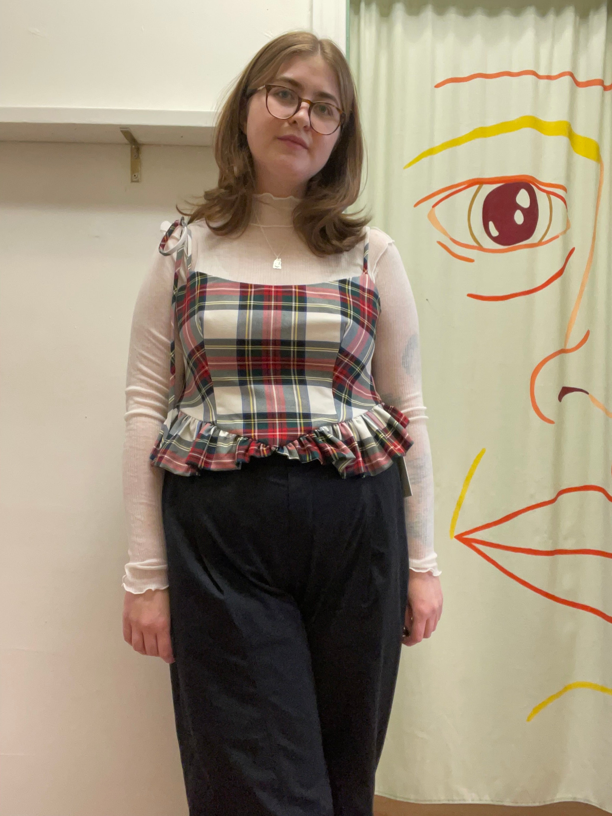 Eliza Faulkner's Candy Corset proves that you never have to sacrifice sex appeal for comfort. It's back this season in a stunning white and red tartan plaid fabric. This corset has a romantic basque waistline with feminine frills. Our favourite details are the adjustable shoulder straps and back tie that allow you to make this corset as loose or tight as you like. This piece is super fashionable yet ultra versatile - rock it solo with jeans or style it over thin turtleneck.