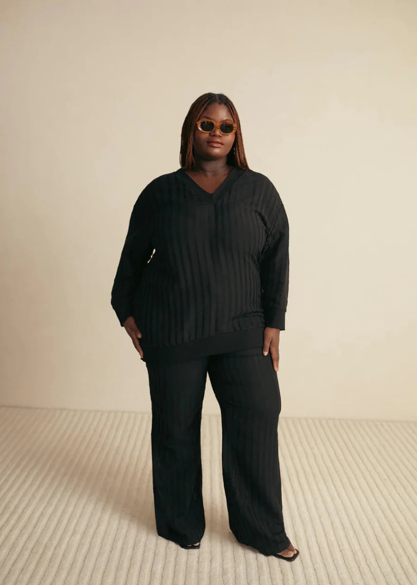 Crafted from delicate fabric imported from France, the Tonal Sweater by Hilary MacMillian is the perfect summer knit. With a relaxed silhouette and drop shoulder design, this sweater offers both comfort and style. Complete with ribbed cuffs and hem, it lends itself to casual or dressy outfits easily - we especially love it with the matching pant!