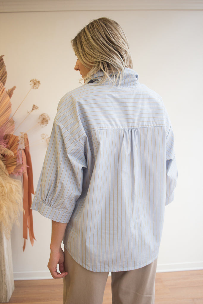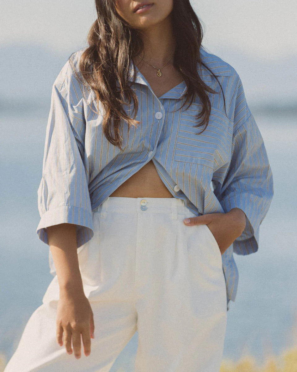 The Haven Blouse by Harly Jae is a romantic menswear inspired button-up blouse. Made from a crisp and soft cotton with a silky finish the Haven Blouse feels like a dream on the body. The Haven Blouse effortlessly achieves that borrowed from him look while maintaining a feminine feel. We love the vintage inspired stripes and colour palette! Pair with your favourite denim and let is hang loose on you for an easy lived-in look that says, I didn't even try!